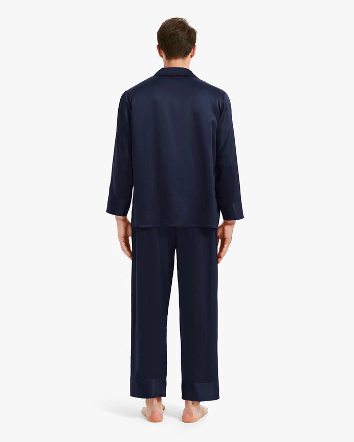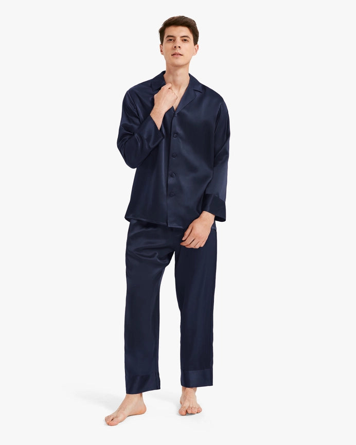Unwind in luxurious style with these Classic Silk Pajamas from Mommesilk. Made with high-quality silk, these pajamas provide a relaxed fit and elasticated waistband for comfortable sleep. With a traditional notched collar and long sleeves with piping, these pajamas also feature silk-wrapped buttons and matching flat fronted pants with a self-tie waist for a fashionable touch.