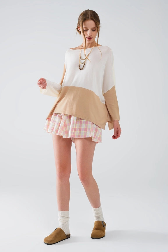 Color Block Bat Wing Sweater in White and Beige