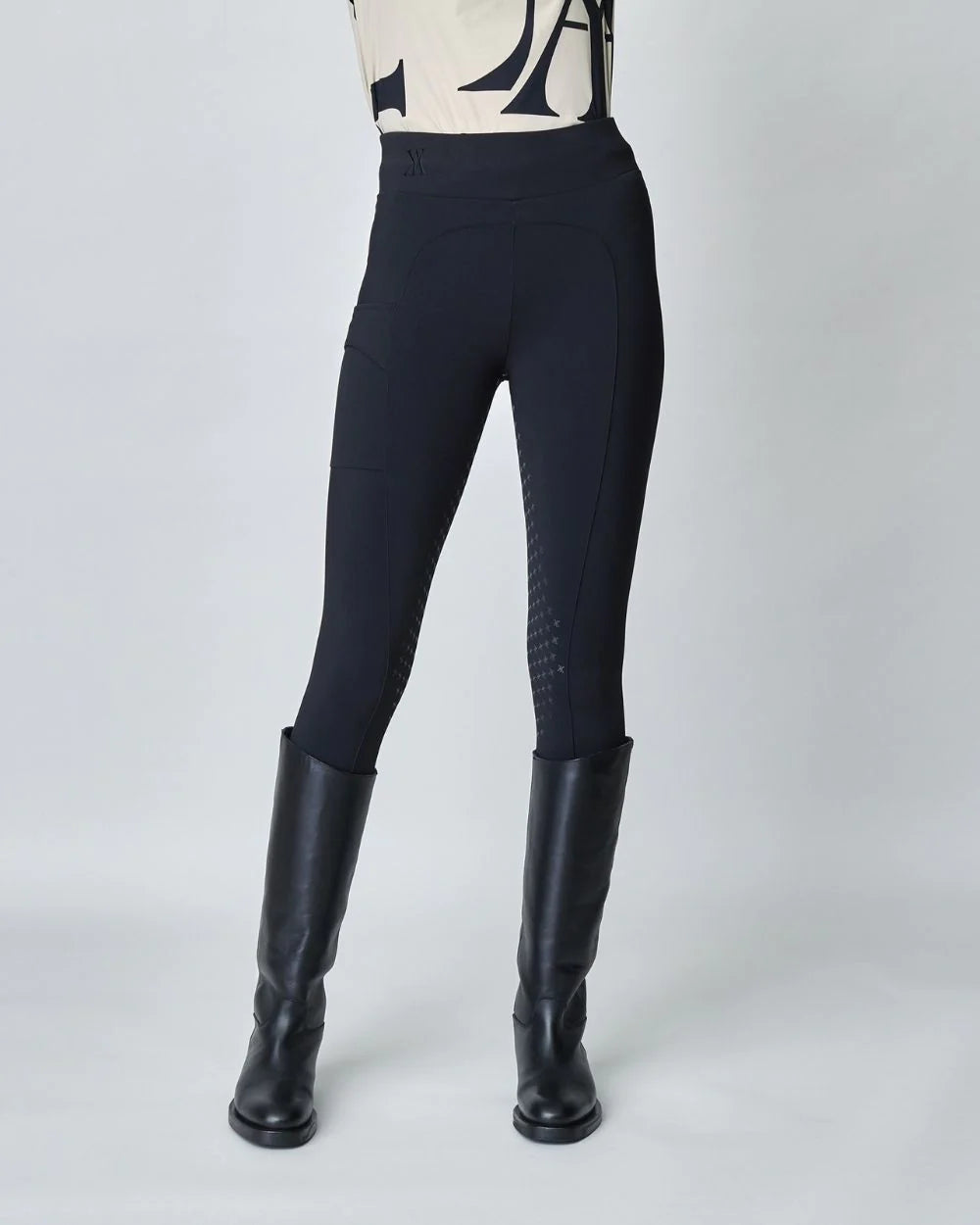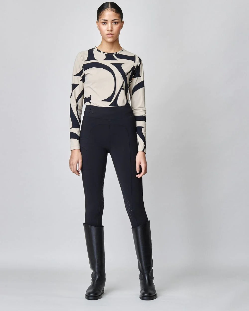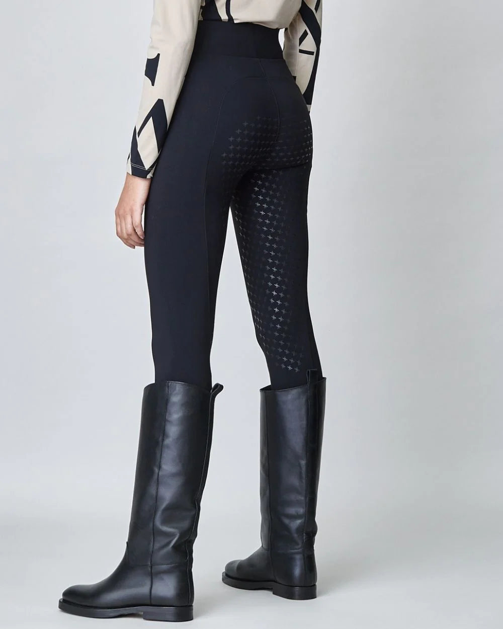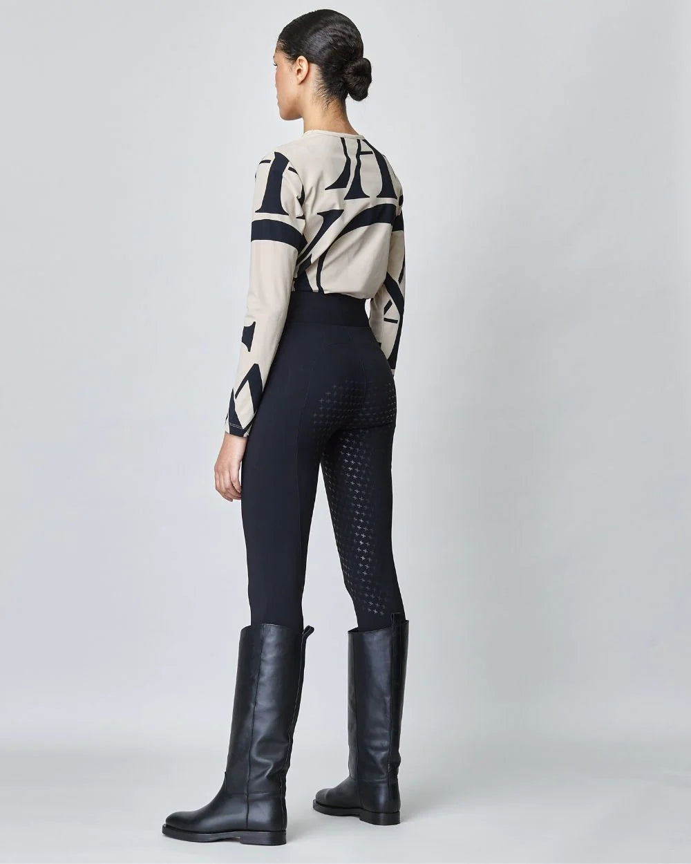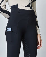 Expertly designed for performance, our Compression Pull-On Riding Breeches boast a high waist and lightweight fabric for optimal movement in all disciplines. Made from exclusive Italian jersey and crafted in Portugal, they provide superior comfort with minimal seams. Featuring a discreet mobile phone pocket and UV protection, these breeches offer both practicality and style. Perfect for hunters, jumpers, and dressage riders. Available in a true-to-size fit.