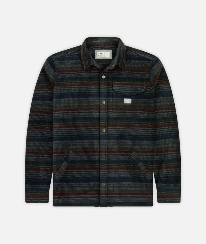 The Concordia Fleece - Black offers coastal comfort and surf-inspired style. The durable, eco-minded design is perfect for crisp, ocean-swept evenings with features like custom metal snaps, flap chest pockets, and custom labeling. Made with 100% recycled polyester fleece, this button-up delivers soft warmth and rugged durability.