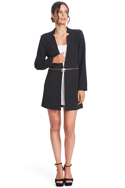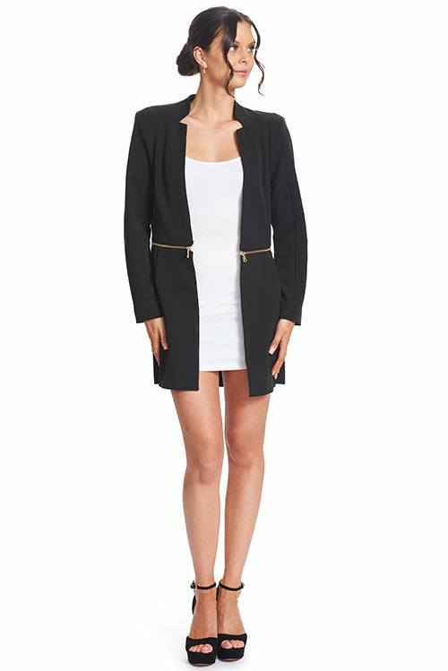 Convertible Notch Neck Blazer - Wear It Long, Half-Zipped Or Cropped!