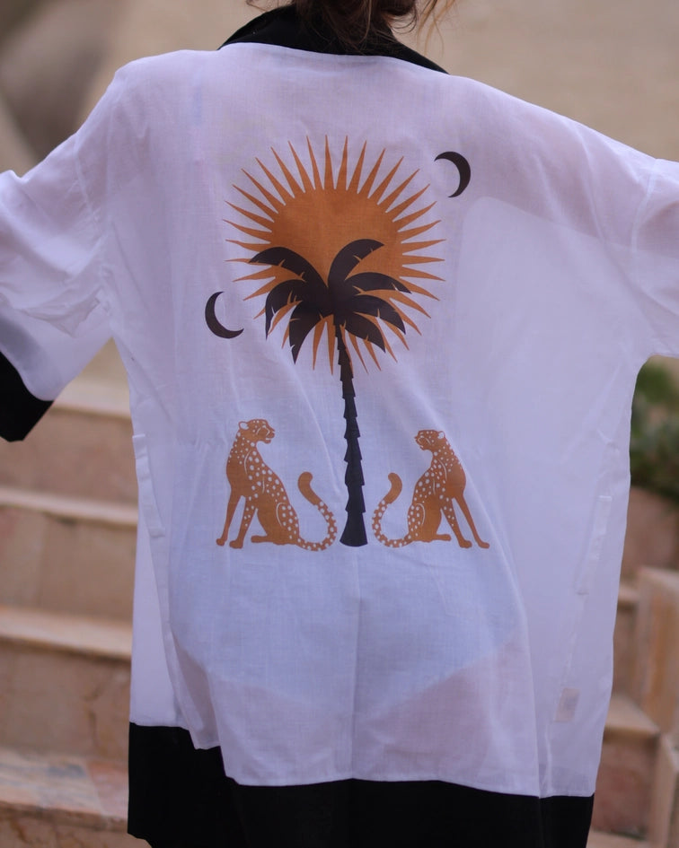 Experience the perfect balance of comfort and elegance with our Cotton Tiger Robe Beachwear. Made from 100% pure lightweight cotton, it features an adjustable silhouette and a stunning tiger design that celebrates your wild spirit. Transition effortlessly from day to night with this versatile piece.