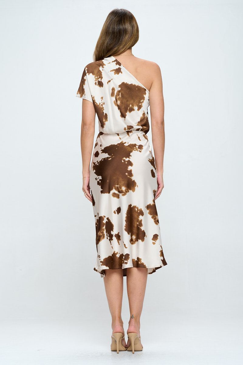 Style: Cow Print Stretch Satin One Shoulder Dress