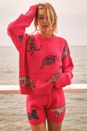 Cozy Multi Tiger Sequin Op With Matching Shorts Hot Pink