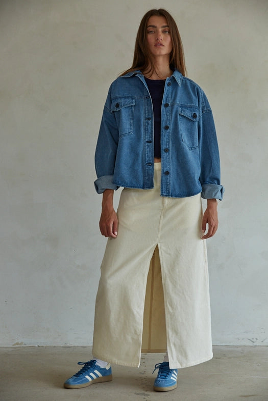 Introducing our Denim Button Down Collar Neck Long Sleeve Top, featuring a woven Cotton Rayon fabric for a comfortable fit. This top also includes a convenient Button Down Collar Neck and Front Pockets, making it a versatile and stylish addition to any wardrobe. Say goodbye to your jean jackets and hello to effortless style.