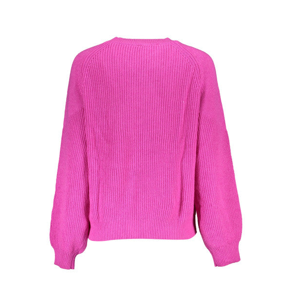 Long-sleeve sweater featuring a crew neckline and contrasting details, adorned with a logo. Made from a blend of 3% elastane, 67% acrylic, and 30% polyamide for comfort and durability.