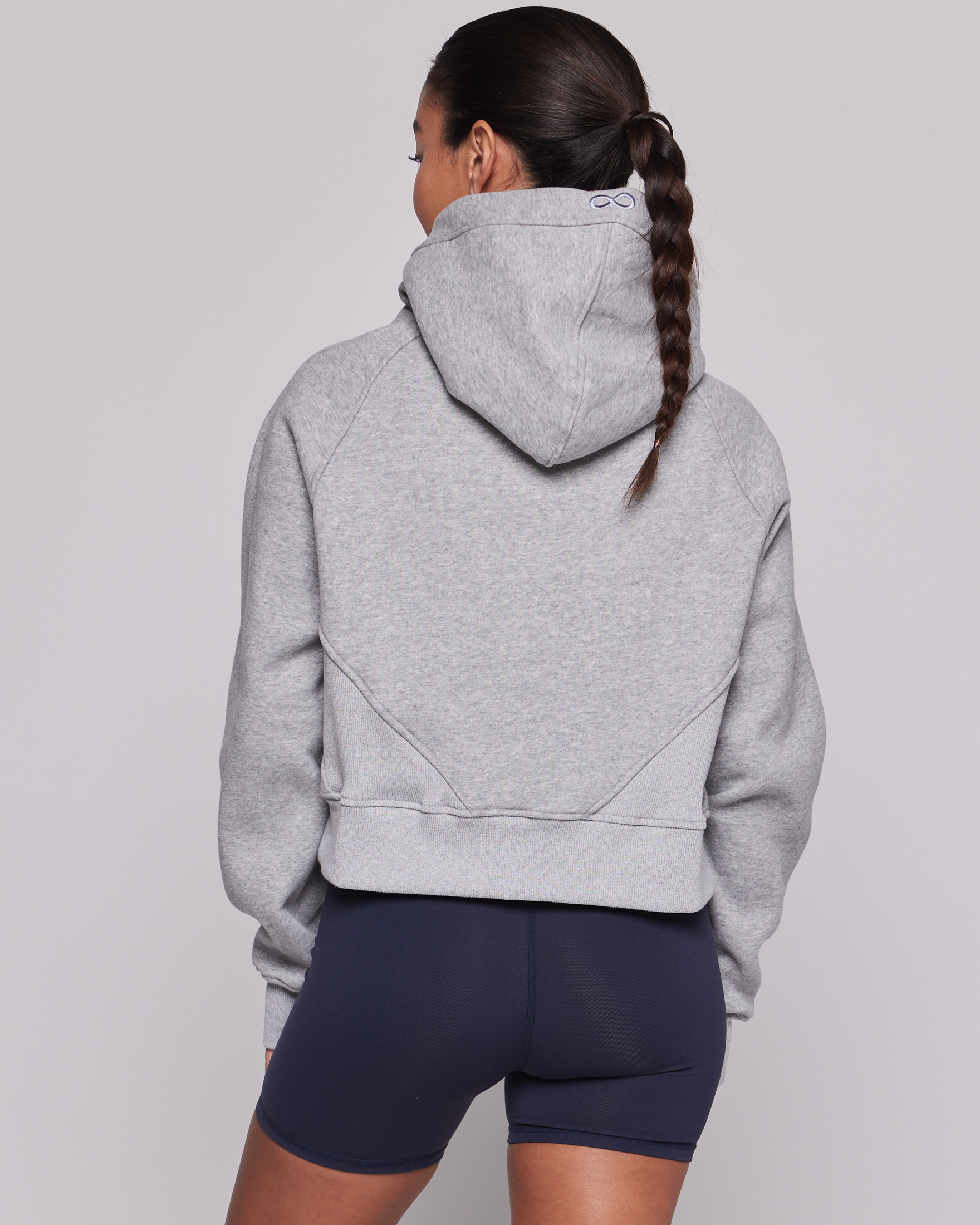 Unwind in style with our boxy half zip hoodie silhouette. Features a semi crop length that lands just below the waist, a funnel neck, thumbholes, and made in fleece scuba fabric – it's irresistibly soft and a loungewear game changer.