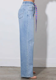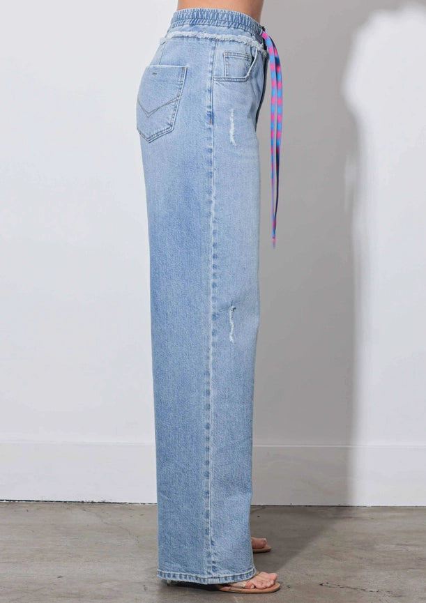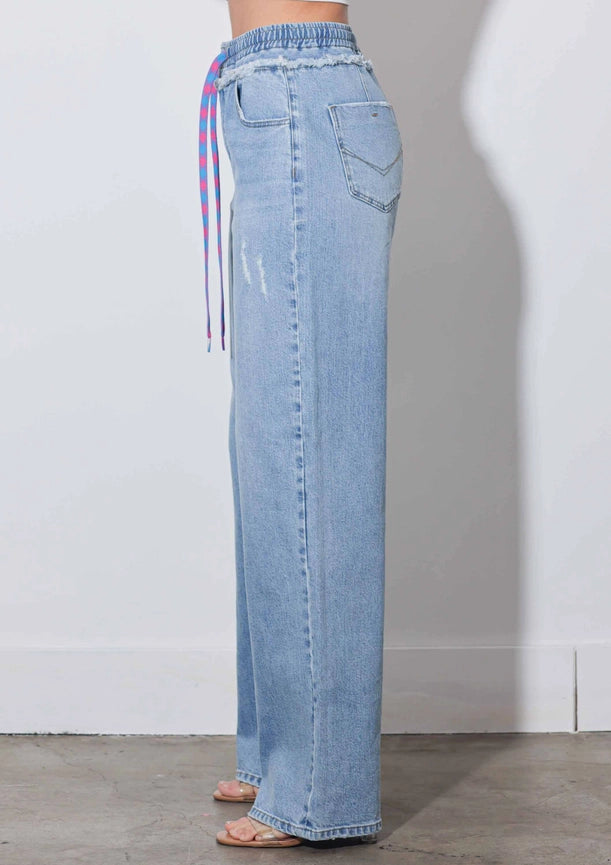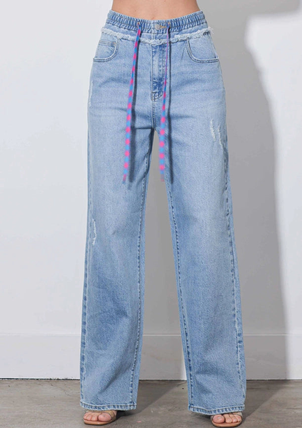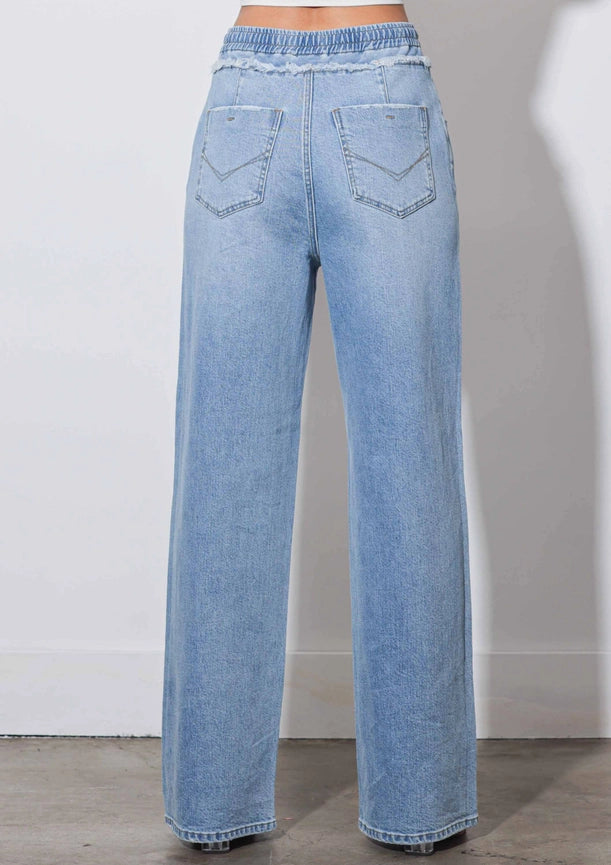 Elastic Waist Straight Jeans with Draw Cord-Jeans-Vibrant M.i.U-S-Medium Stone-Urbanheer
