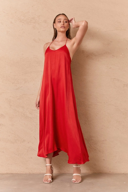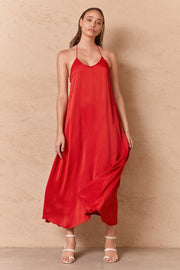 Expertly designed and ethically made in Australia, the Enlighten Dress in Cherry Red is the perfect addition to your wardrobe. Its lightweight fabric and low back with double crisscrossing straps offer a comfortable and stylish fit. With a single button closure at the back of the neck and easy care instructions, this dress is a must-have for any fashion-forward individual.
