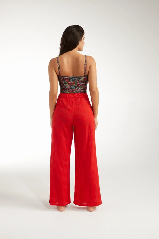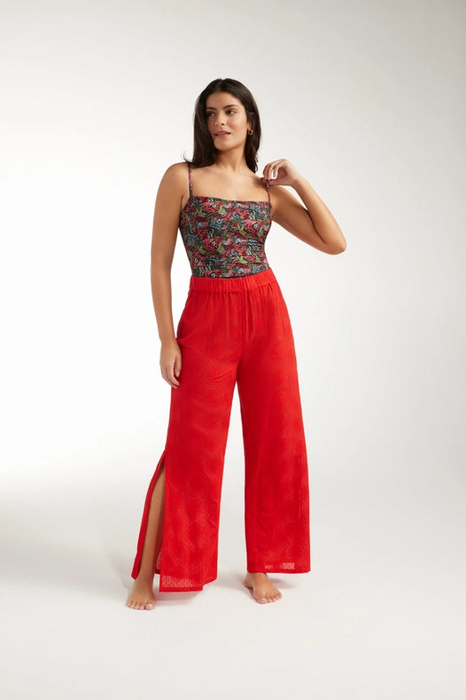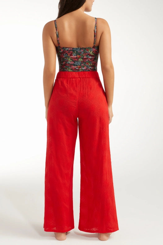 Introducing the Eve Gaucho Pant, your new go-to for a stunning warm weather look. This wide-leg vacation staple is crafted from luxurious eyelet cotton for a billowy, feminine texture. Made in Colombia for a touch of exotic charm. Elevate your style game with bold, balanced play.