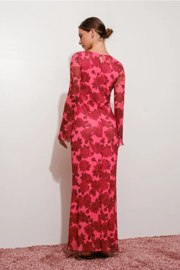 Exclusive Floral Print Bell Sleeve Maxi Dress