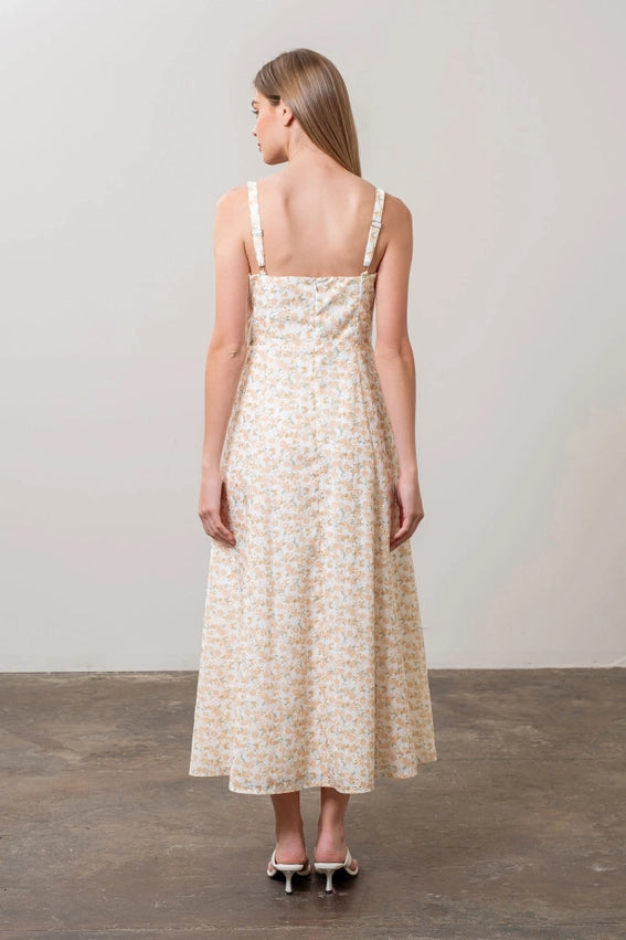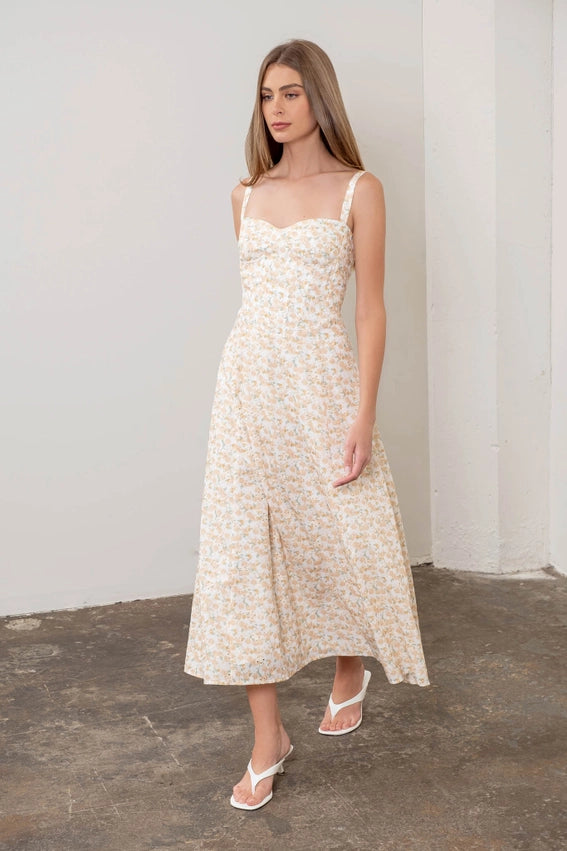 Eyelet Floral Corset Detail Sleeveless Midi Dress
