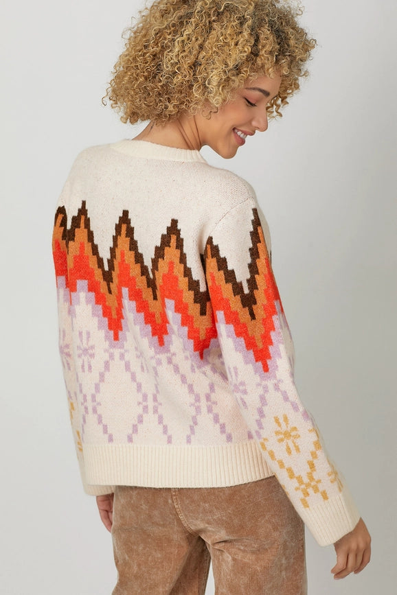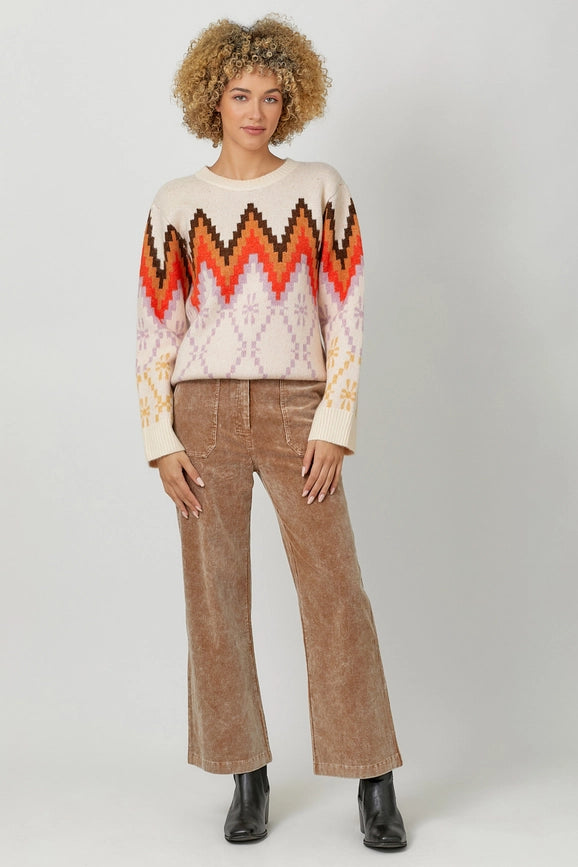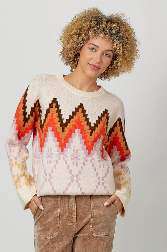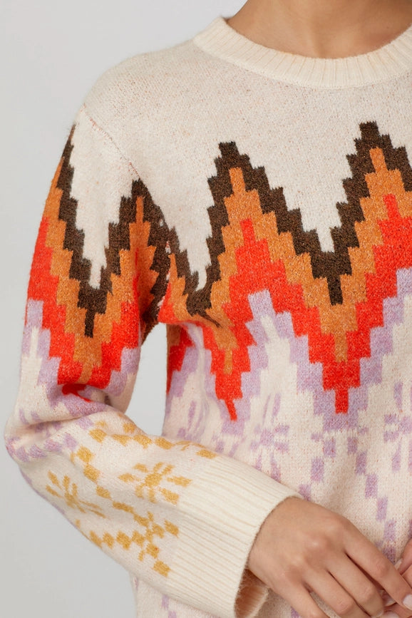 This fair isle pullover sweater features a round neck and ribbed knit neck, cuff, and hem for a comfortable fit. With a loose fit, this sweater is perfect for staying warm and stylish during the colder months. A must-have for any fashion-forward individual.