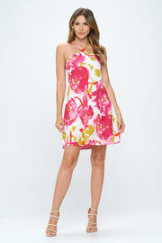 Made in USA Floral Print Criss Cross Neck Dress. Fabric content: 95% Polyester, 5% Spandex.