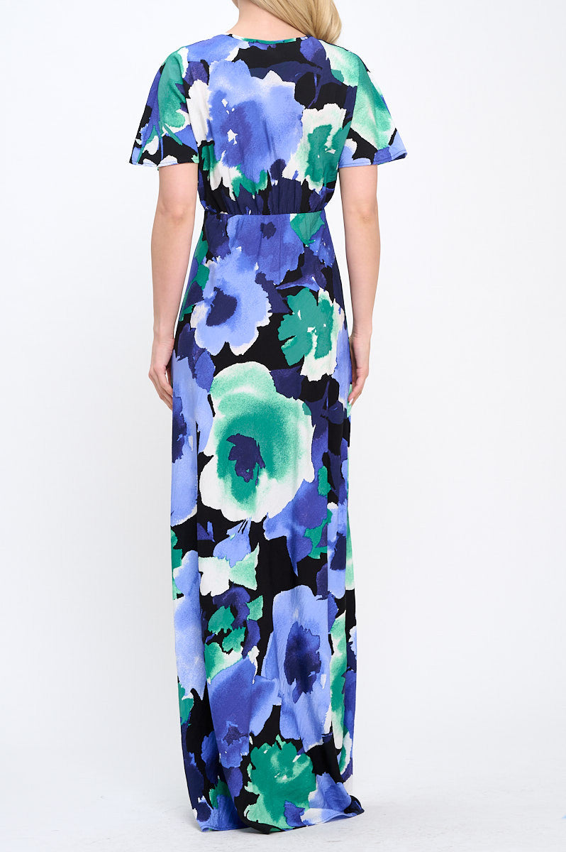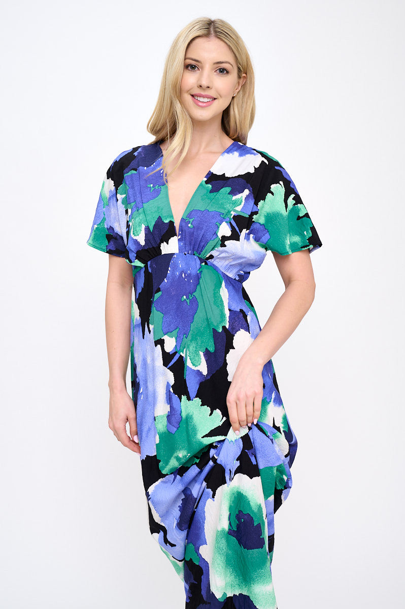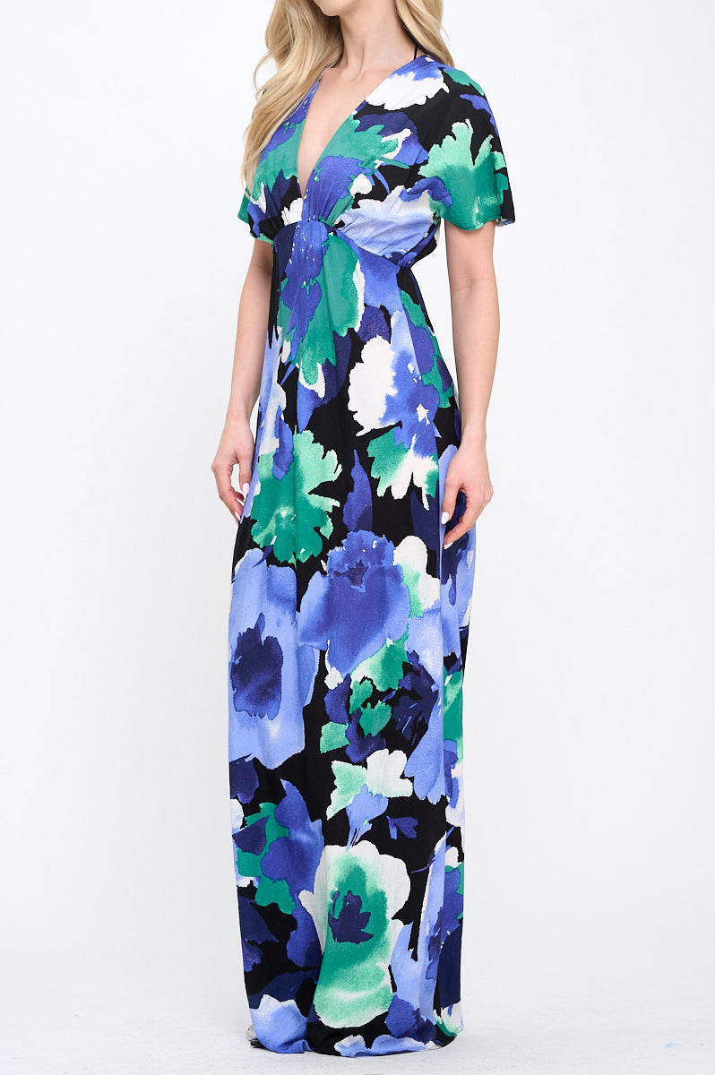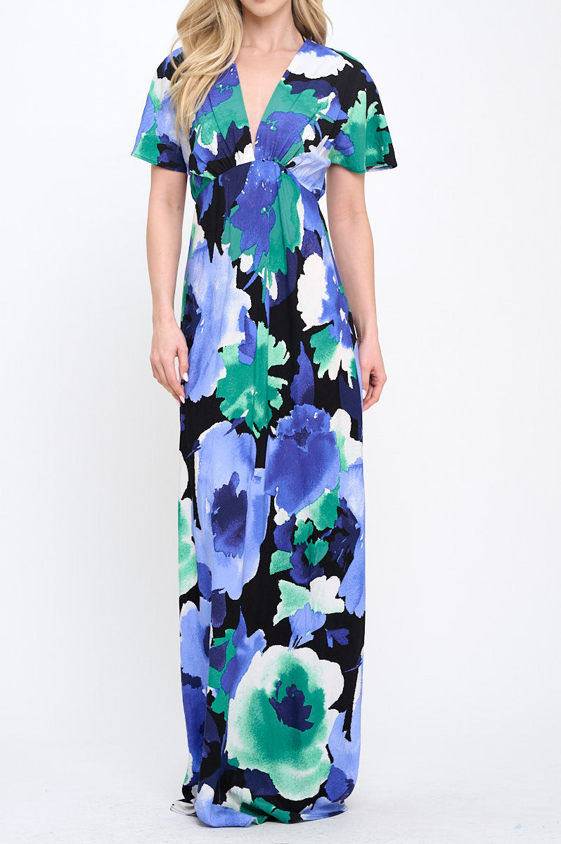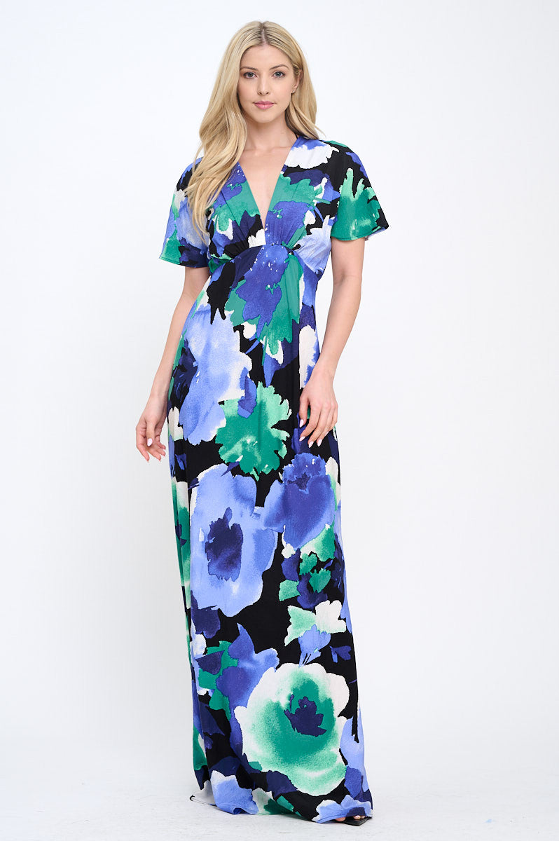 Floral Print Deep V neck Kimono Style Maxi Dress-Dresses-Reneecollection-Small-BLUE/GREEN-Urbanheer