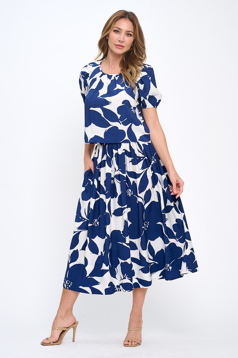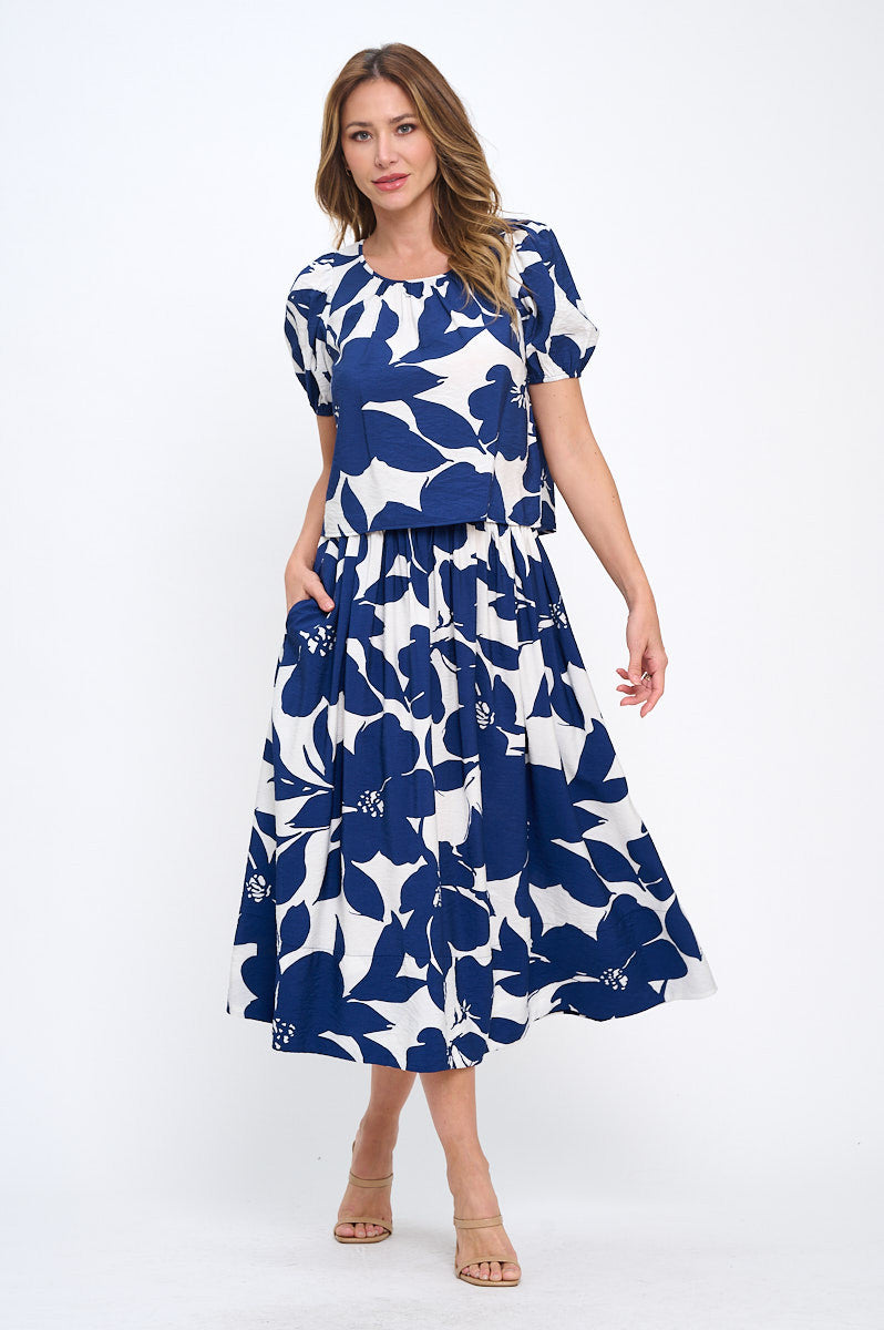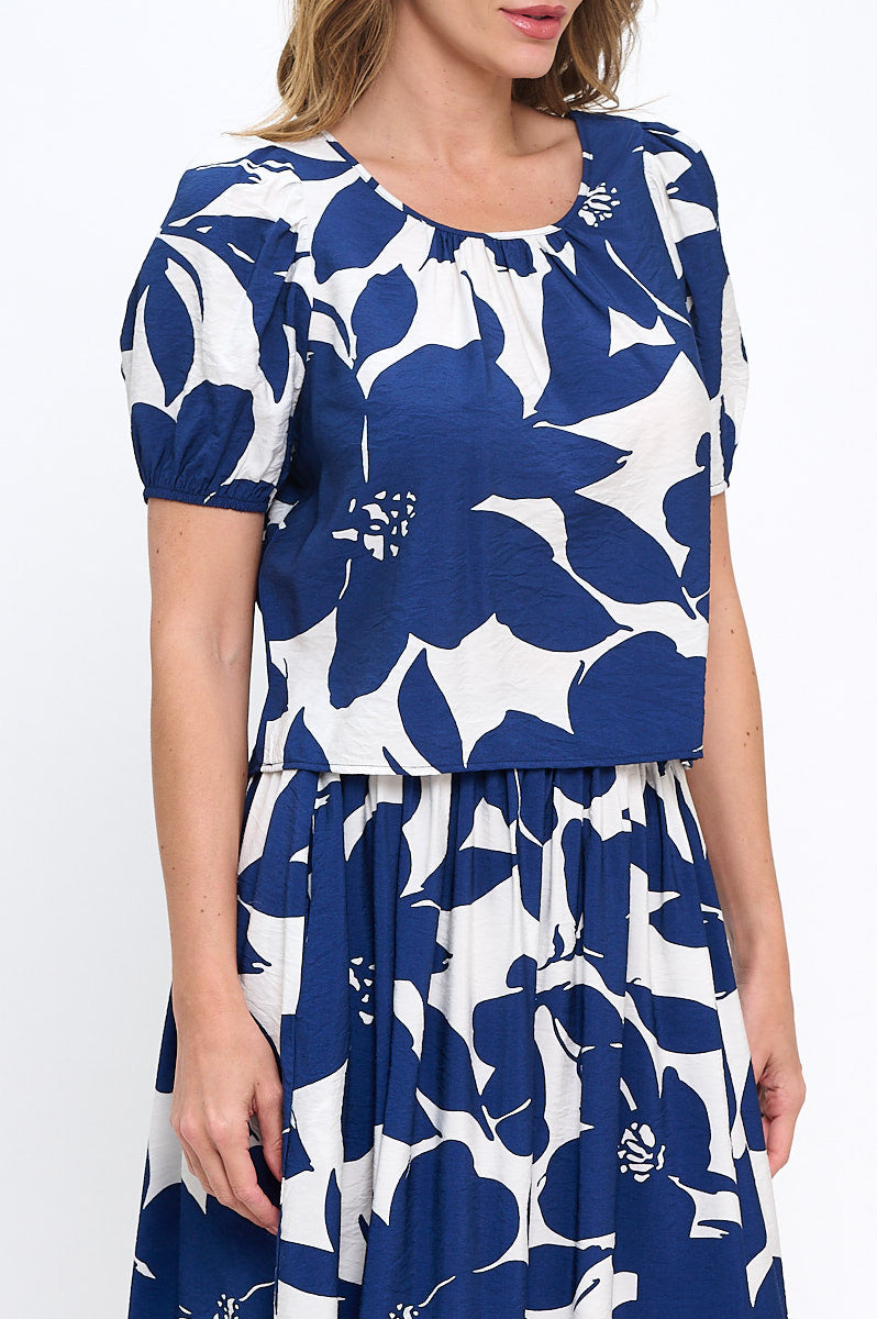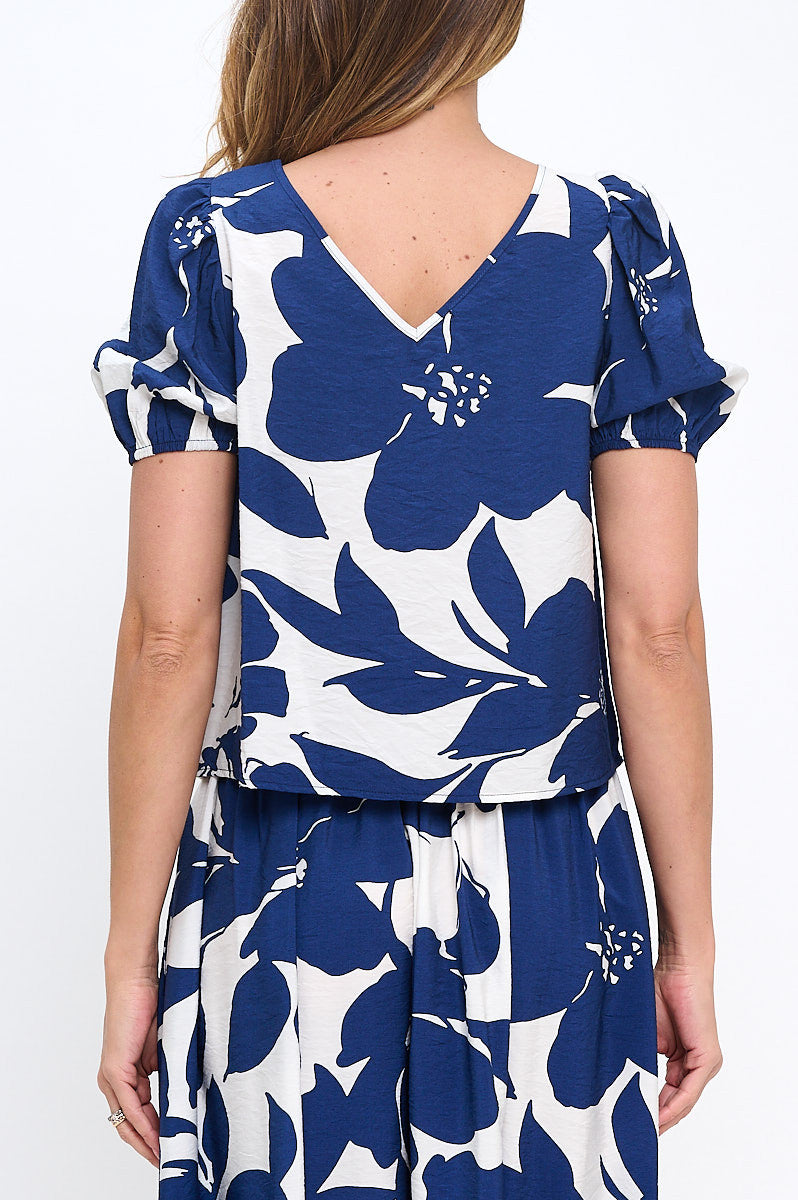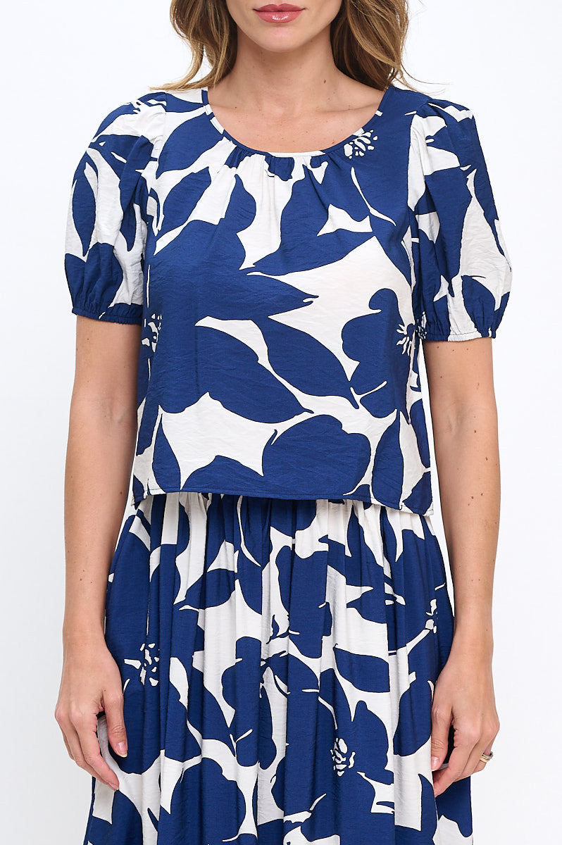 Floral Print Round neck Puff Sleeve Top with Back Detail.