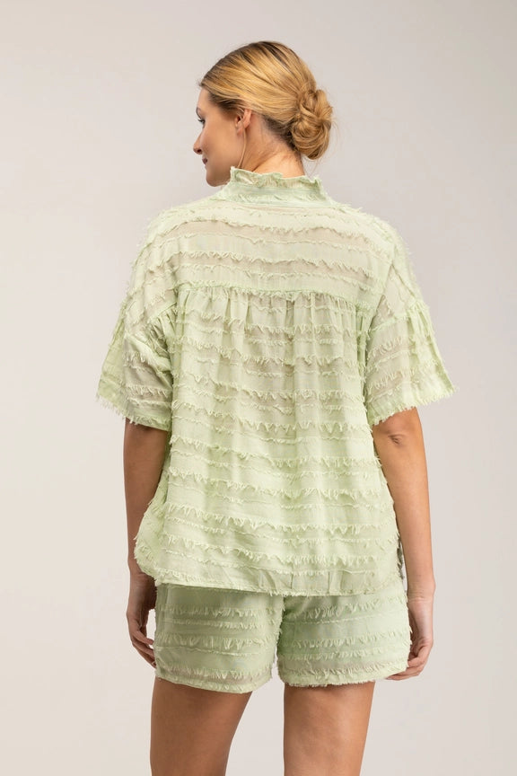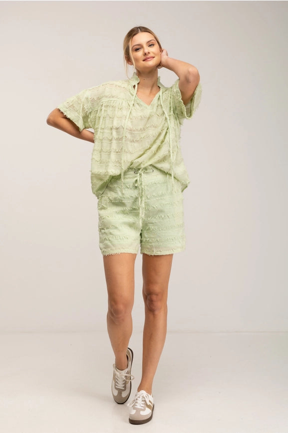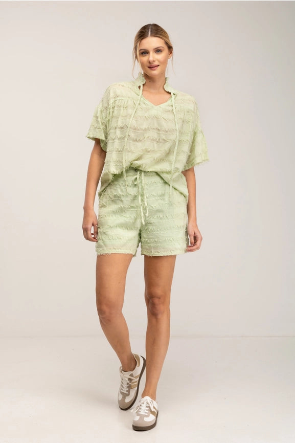 Frayed Effect Blouse and Shorts Set Green-Set-Tantra-S-GREEN-Urbanheer