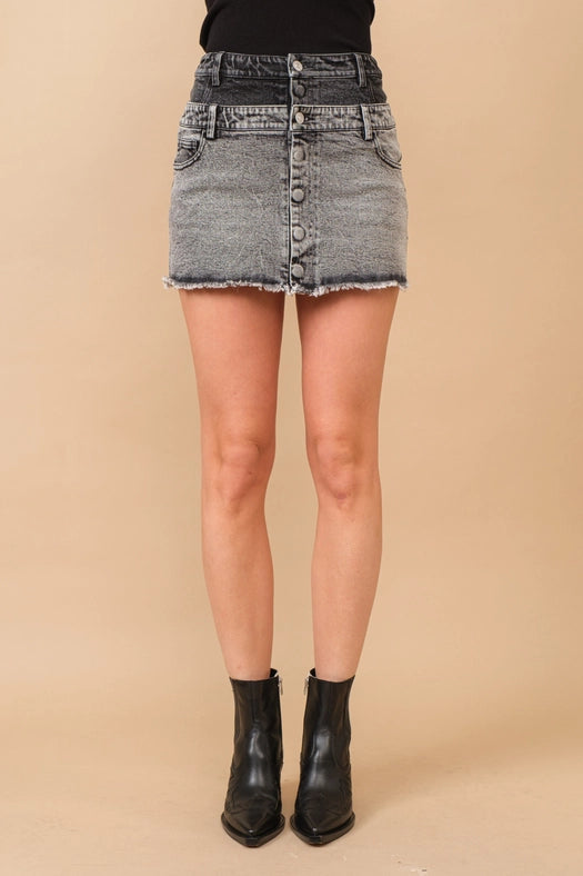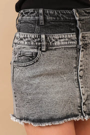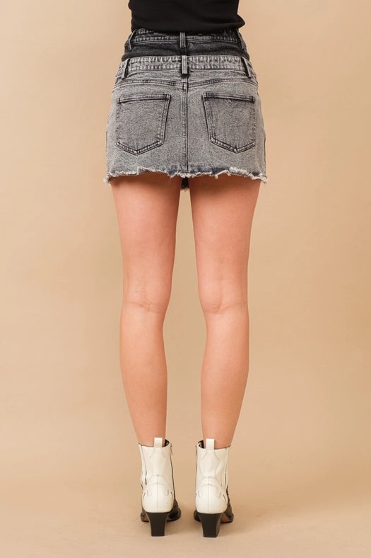 Frayed Hem Stretch Denim Mini Skirt CHARCOAL BLACK