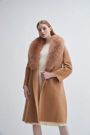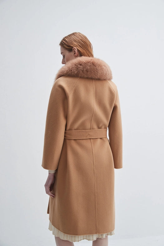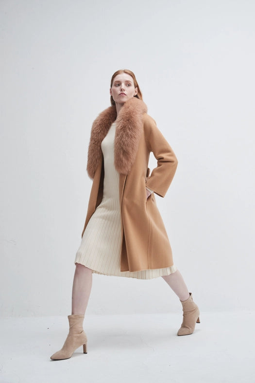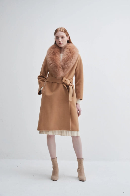Elevate your outerwear collection with this refined cashmere blend coat, featuring a detachable dyed fox fur collar that adds an element of timeless elegance. Meticulously hand-stitched from a sumptuous blend of 20% cashmere and 80% virgin wool, this piece delivers exceptional warmth without compromising on style. The luxurious removable collar allows versatility for any occasion, while the premium construction ensures lasting quality. True to size with a classic fit, this sophisticated coat is the ultimate investment in understated luxury. Professional dry cleaning recommended.