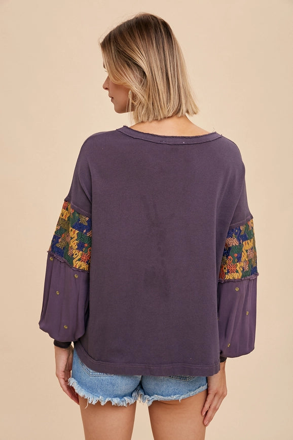 Garment Washed Embroidered Sleeve Long Sleeve Tee CHARCOAL-Tee-In Loom-S-CHARCOAL-Urbanheer