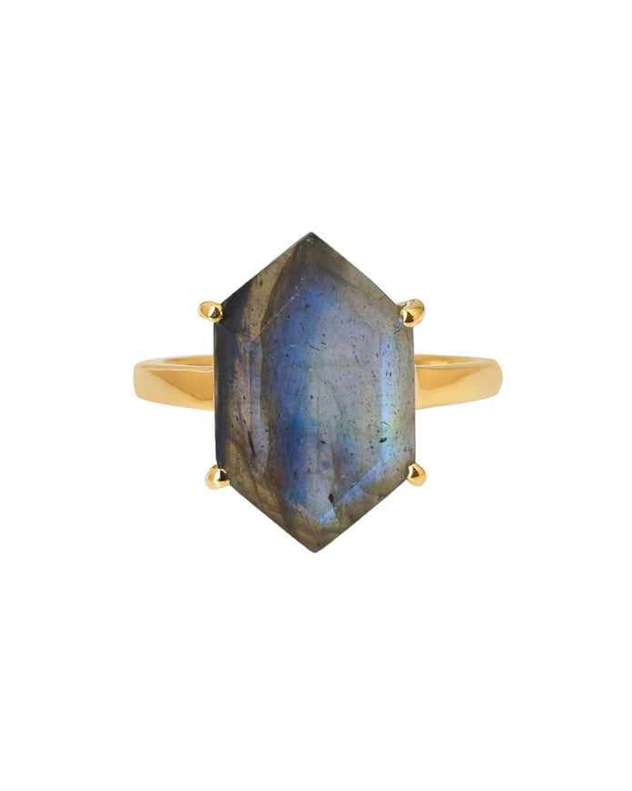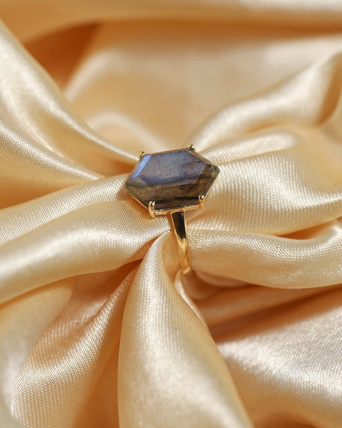 Gold Over 925 Sterling Silver Labradorite Hexagon Ring