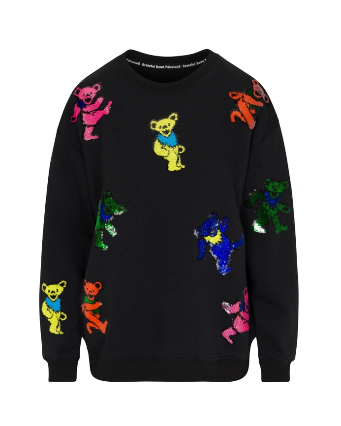 Grateful Dead Dancing Bears Sequin Sweatshirt - Black