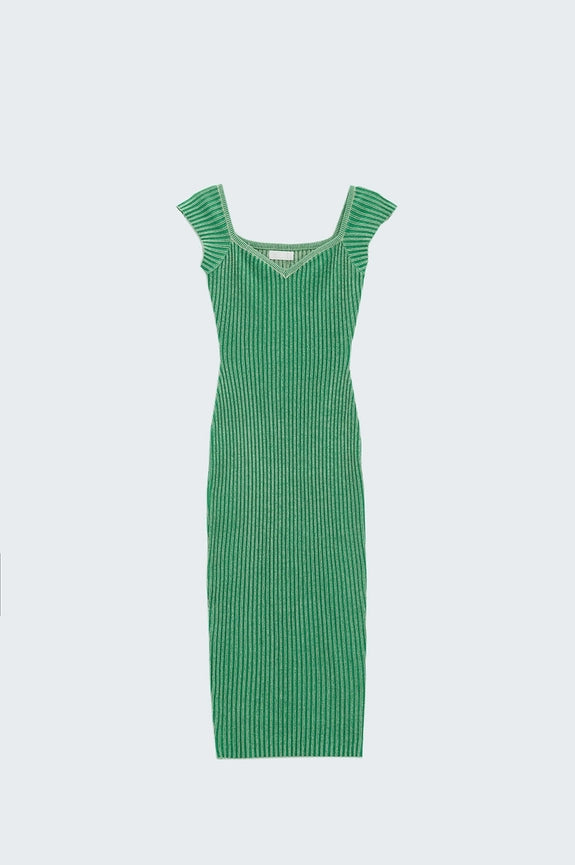 Green Midi Thick Rib Bodycon Dress with Cap Sleeves