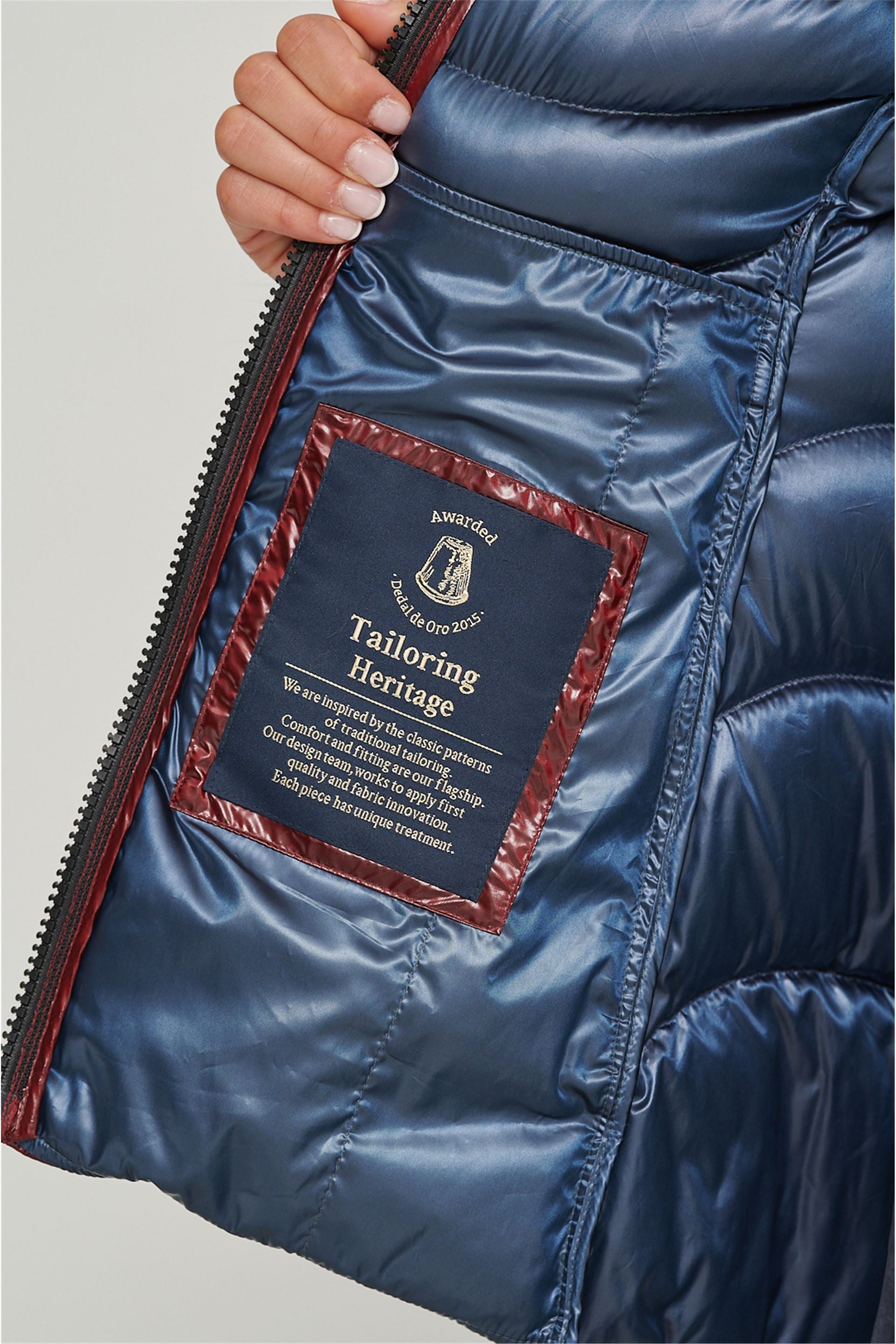 Elizabeth is filled with 245 gr of thermo-regulating down, made of a water-repellent and windproof lacquered fabric and finished with crystal fox fur on the hood and cuffs.