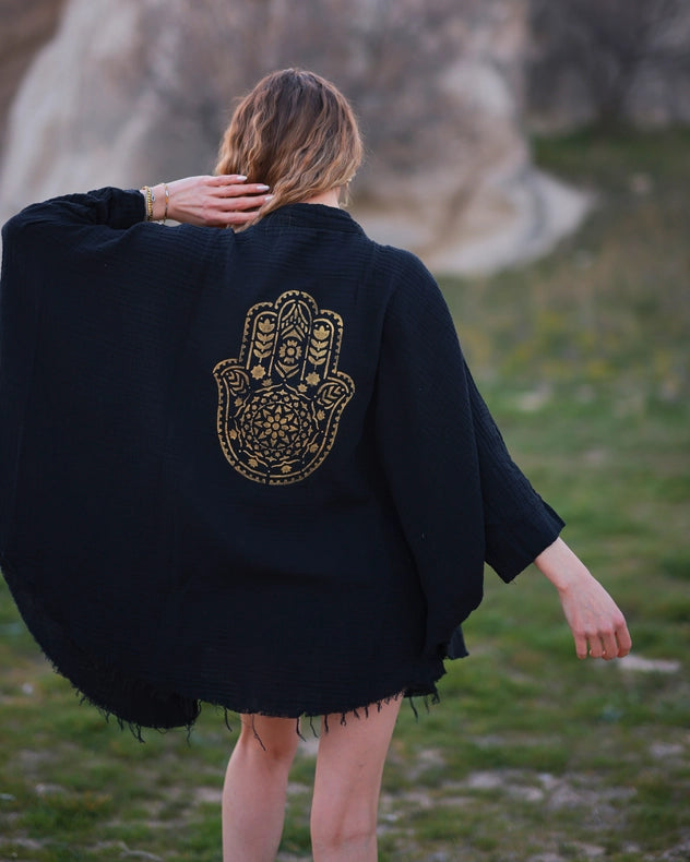 Hamsa Hand Double Gauze Muslin Robe
