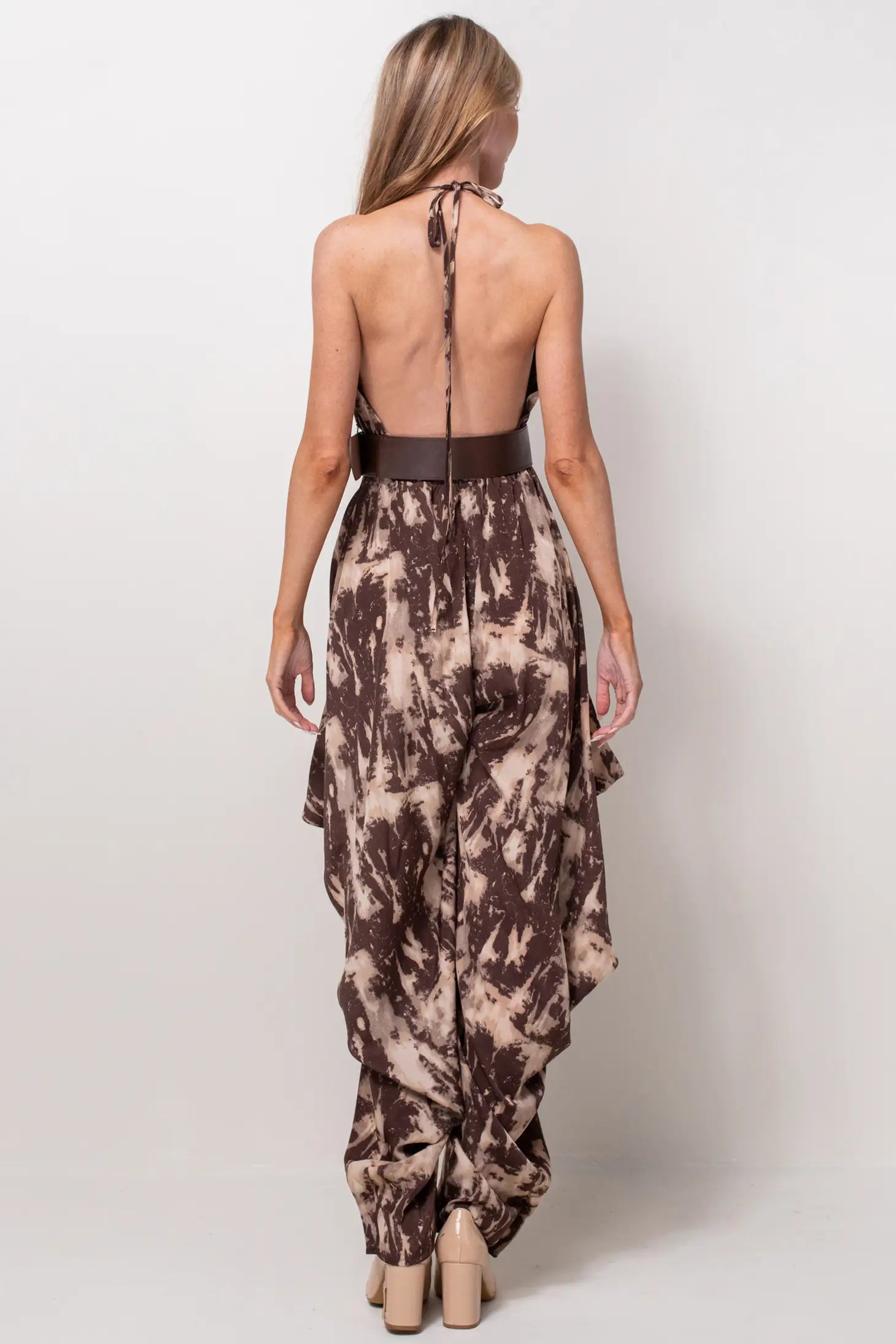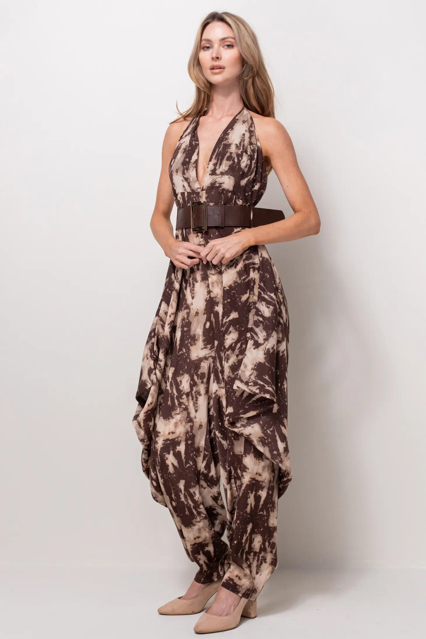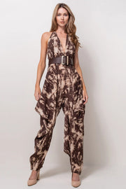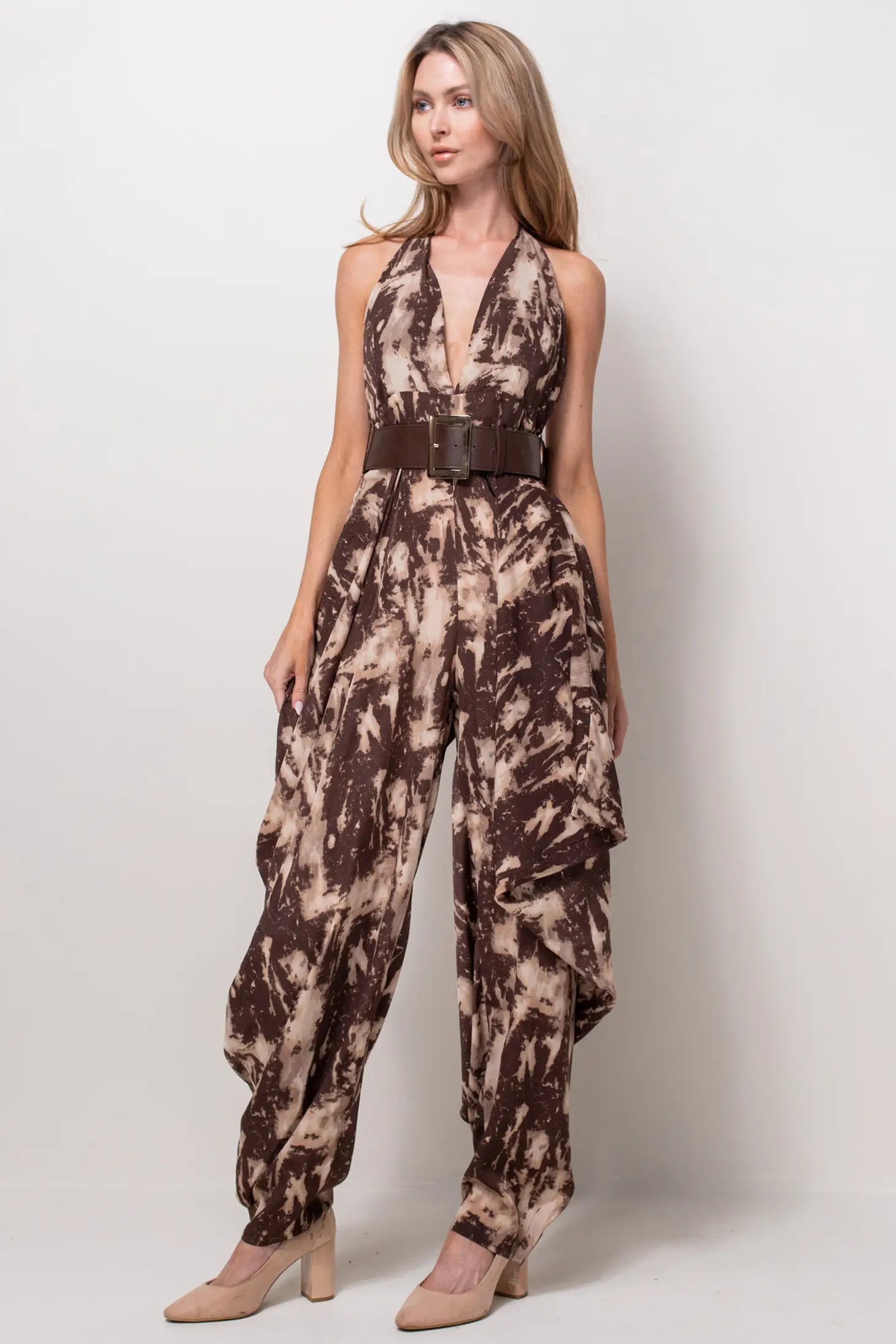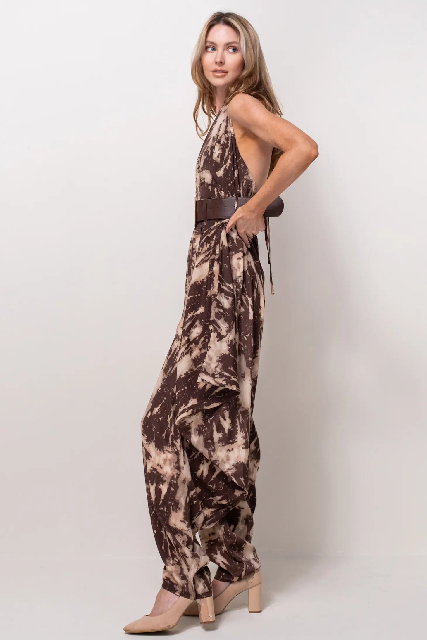 Belted detail high waisted straight leg pant with waist tie and side pockets. Model is wearing size S.
