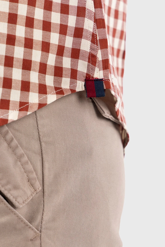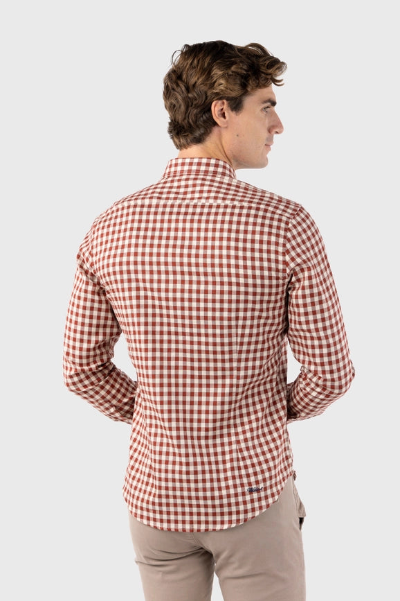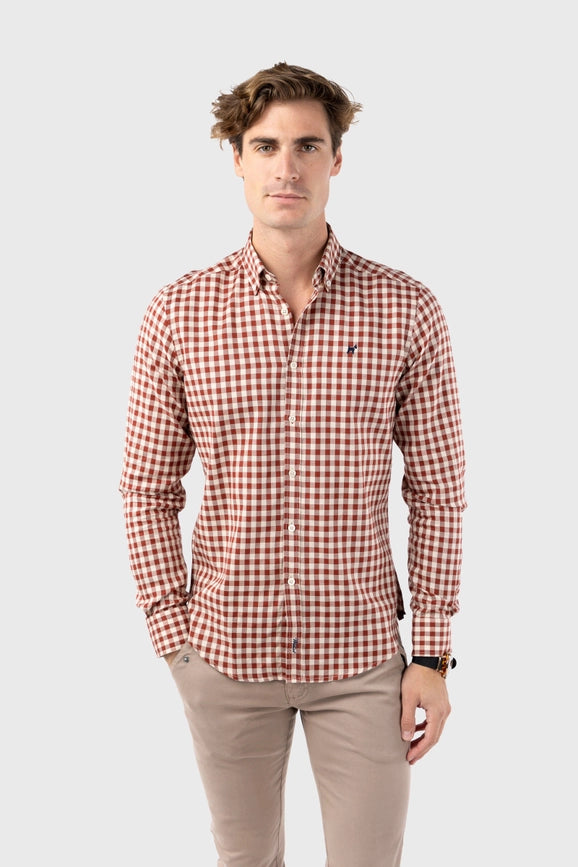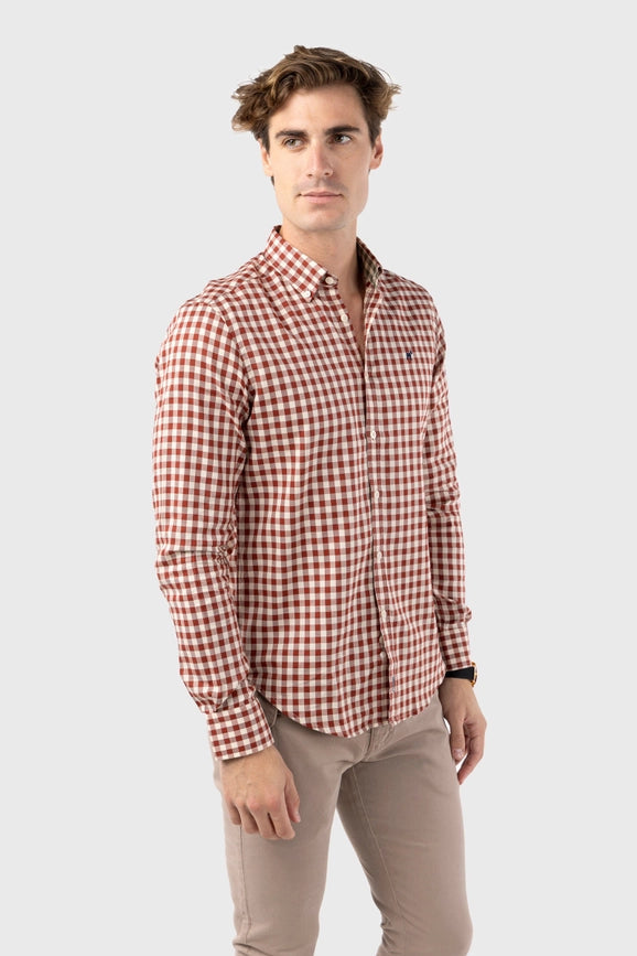 Elevate your professional wardrobe with the Harvard Burgundy Slim Fit Checkered Shirt. Crafted in a soft Oxford fabric, this plaid shirt offers a stylish slim fit and is made of 100% cotton for all-day comfort. The button down collar and front logo embroidery add a touch of sophistication. Made in Spain.