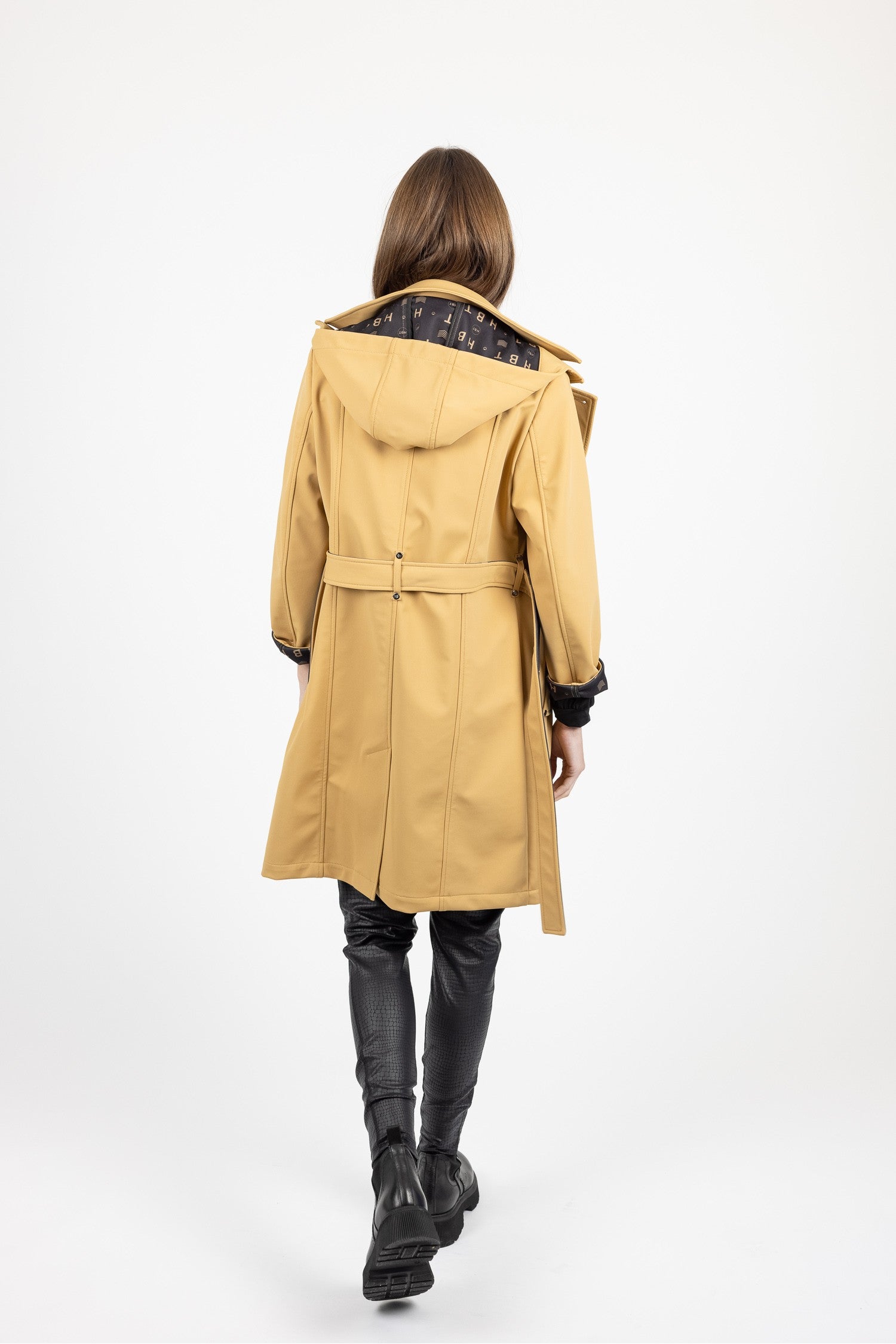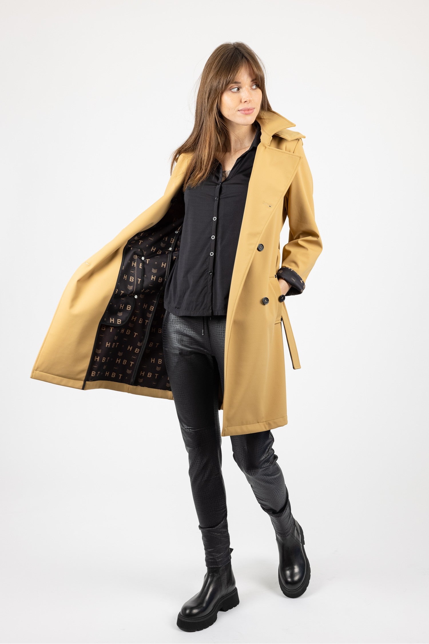 The timeless beige long trench coat QUEEN designed in scraped polyamide is the ideal piece for an elegant, feminine and comfortable style.
