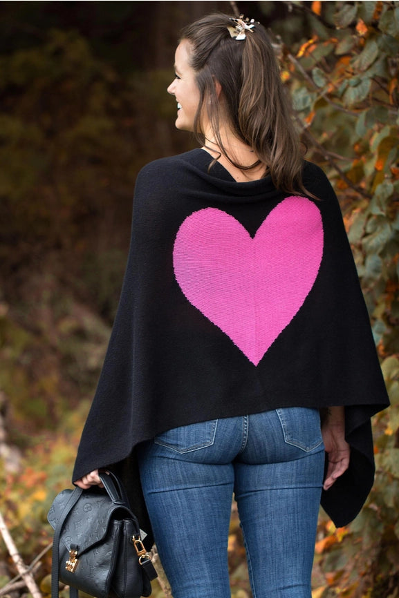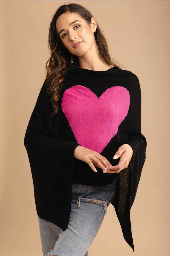 Heart Cashmere and Silk Poncho Black
