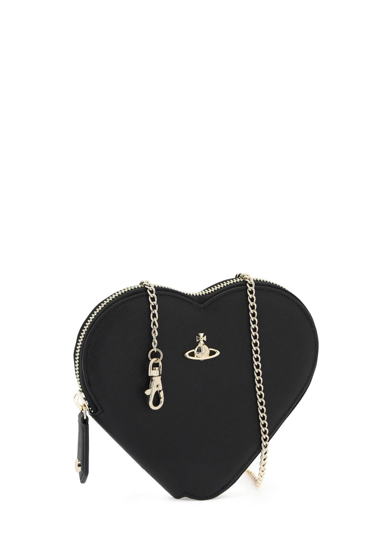 This stunning Vivienne Westwood heart-shaped crossbody bag is made of high-quality saffiano leather, giving it a luxurious and durable touch. The iconic platinum metal Orb adds a touch of elegance to the design, while the zip closure and fabric interior ensure functionality and practicality. With a removable chain strap, this bag can be effortlessly worn as a crossbody or carried as a clutch, making it the perfect accessory for any occasion.