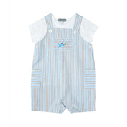 Petit Confection Style NP280 Your baby boy will look dapper from head to toe in these adorable seersucker overalls! Hand embroidered helicopter, butter soft tee, and thoughtful details. Great for playdates and family vacations!