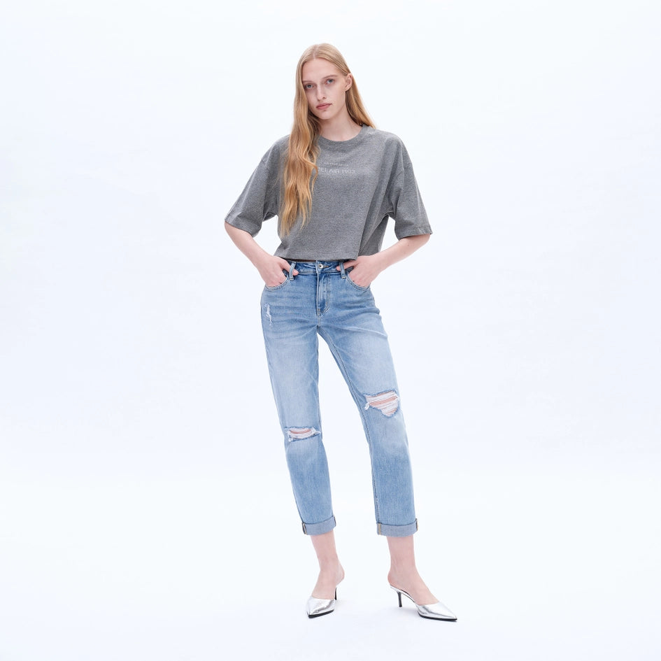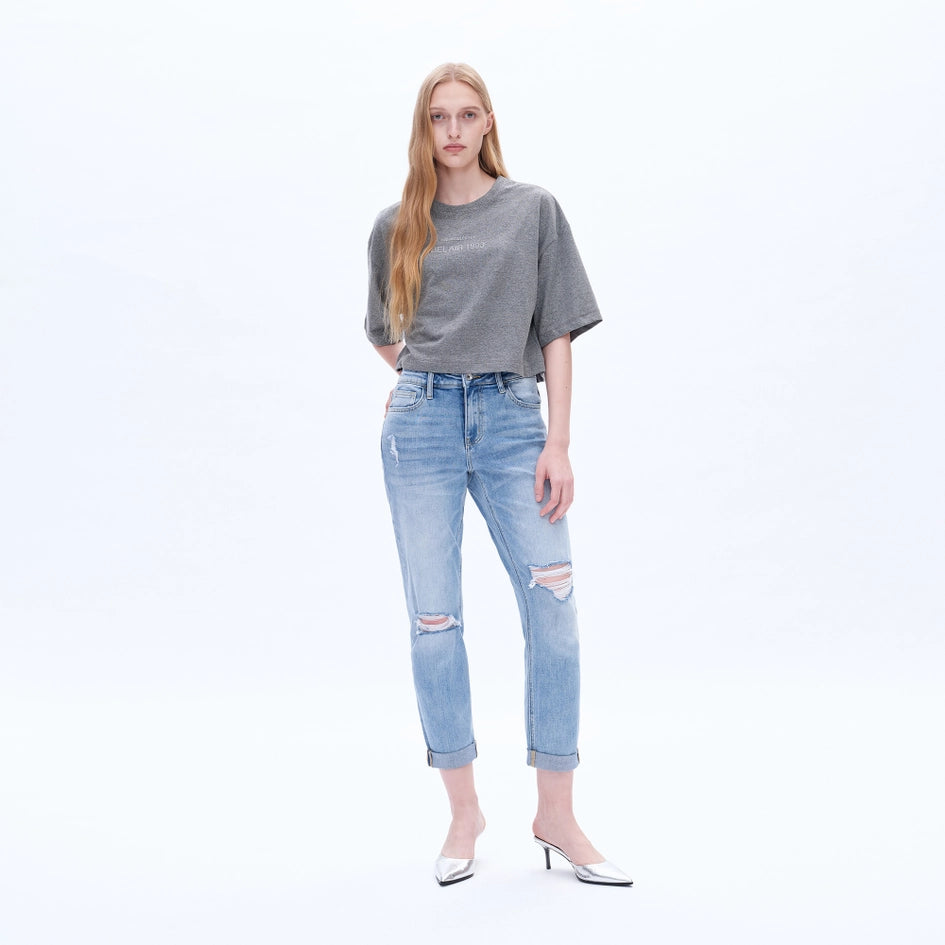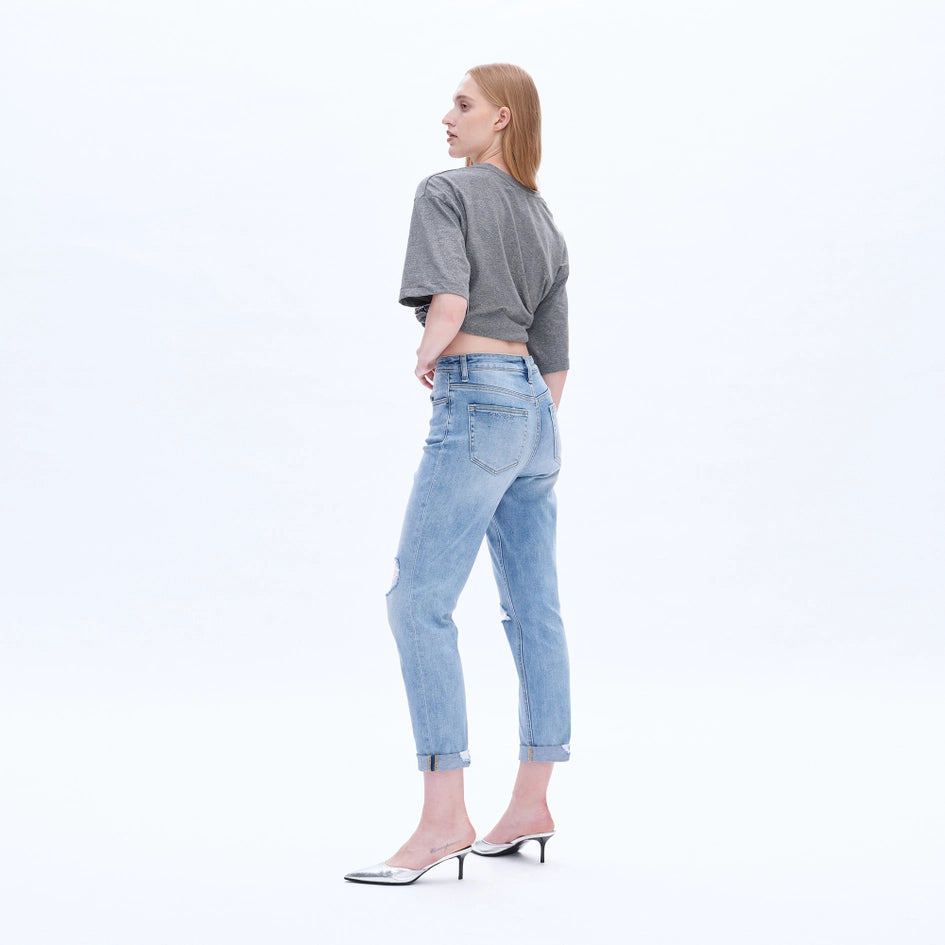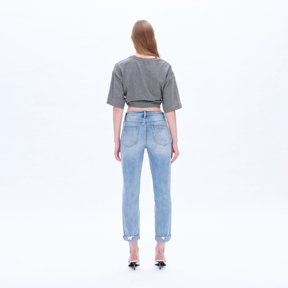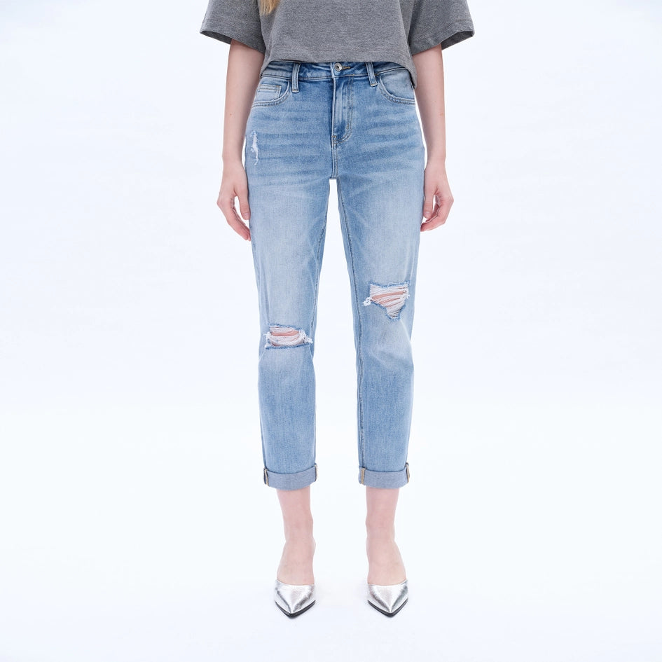High Rise Relaxed Boyfriend Jeans with Rolled Hem SOUTHERN