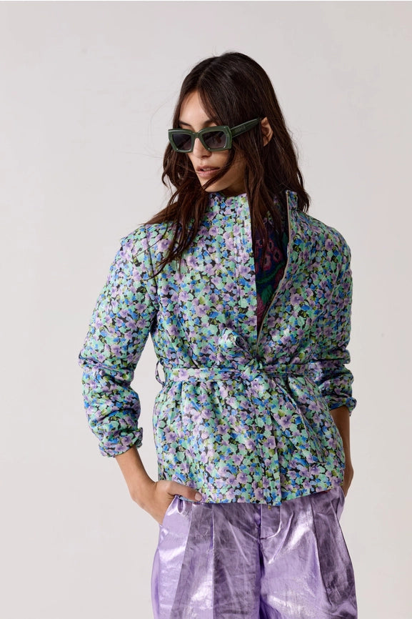 Highland Metallic Linen Quilted Jacket - Meadow Print