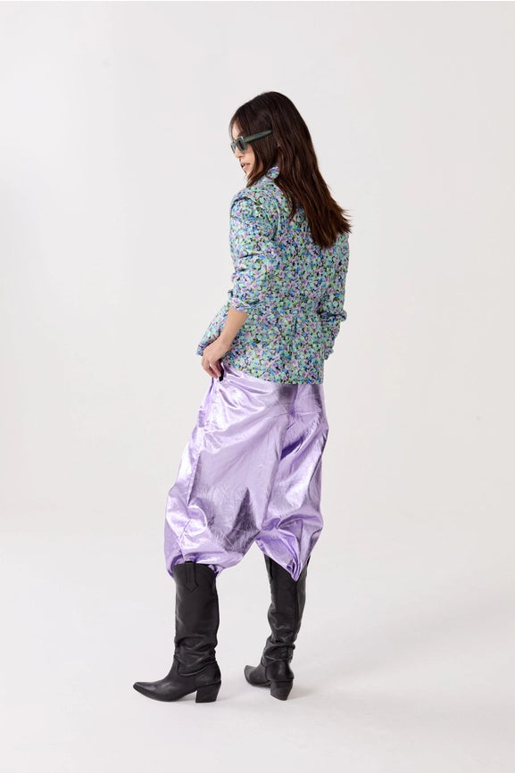 Expertly crafted from 100% natural linen, the Highland Metallic Linen Quilted Jacket boasts a chic meadow print and shimmering metallic coating. Its versatile design features long sleeves, a front zipper, side pockets, and a waist belt for effortless style. Perfect for layering over the Astro Metallic Linen Pants. Made in Vietnam.