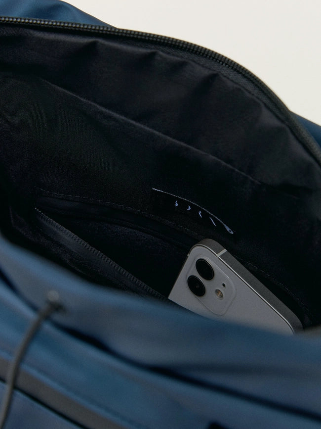 The Hudson Sailor Blue Backpack is designed for functionality and style. Made with waterproof fabric and waxed zipper closures, it keeps your belongings safe and dry. With three pockets, including a mesh exterior pocket and an adjustable cord closure, this unisex backpack is perfect for any adventure.