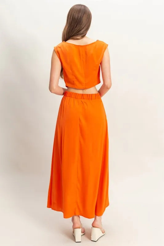 HYFVE Sleeveless Top and Maxi Skirt Set-HYFVE-ORANGE-S-Urbanheer