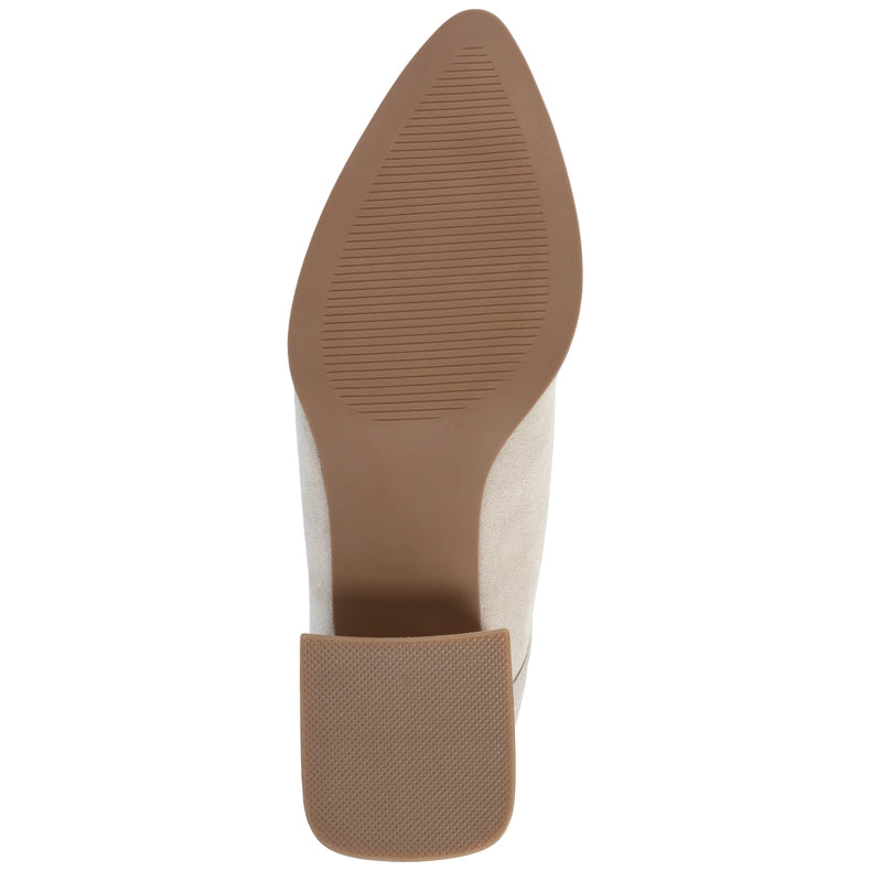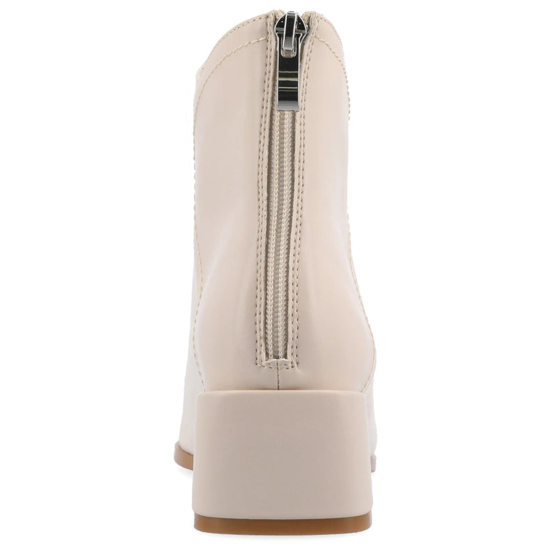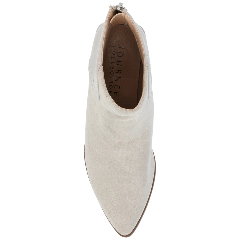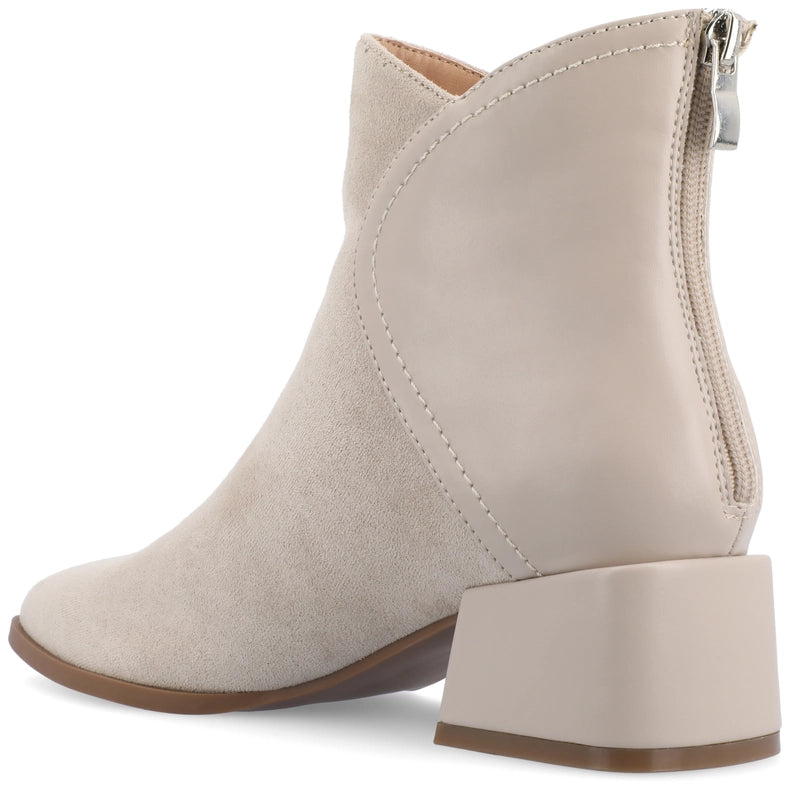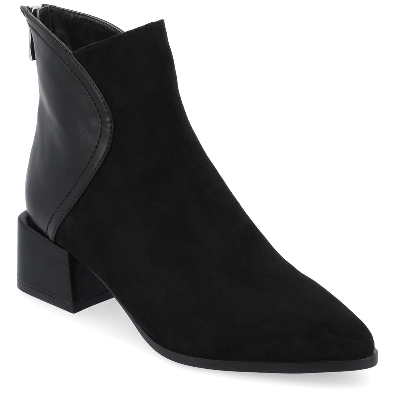 Meet Consuello, the versatile bootie from Journee Collection. Made from vegan leather with a 2-tone accent, this bootie features a 2-inch covered block heel, pointed toe, and easy-to-use zipper entry. With a 4 MM Tru Comfort Foam™ insole, Consuello offers all-day comfort and is perfect for mixing and matching with any outfit.