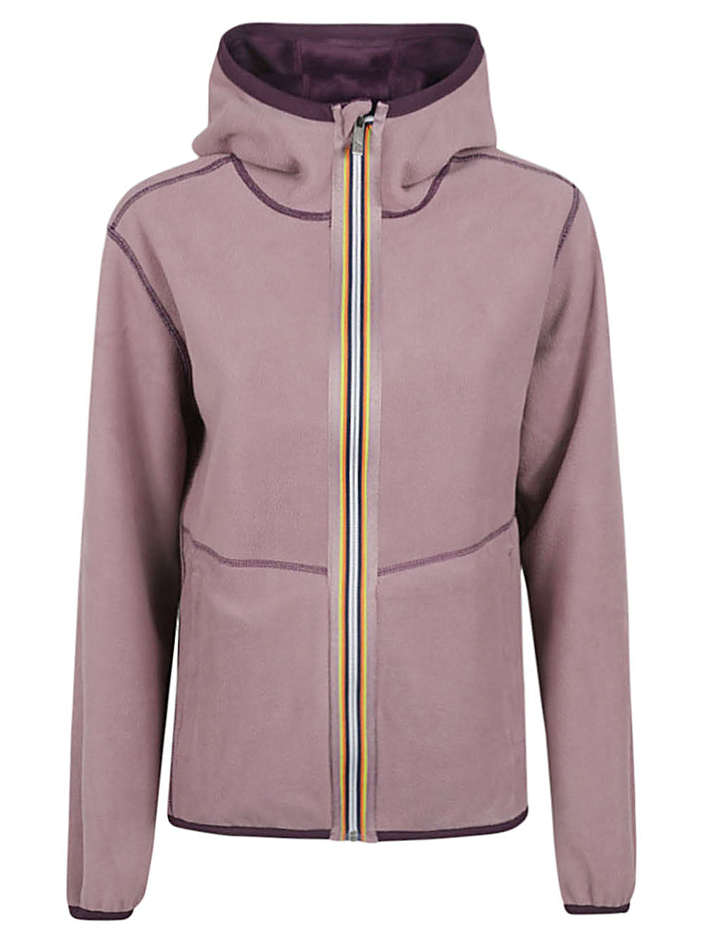 Purple jacket, reversible design, two -layer polar fabric, zip closure, 2 zip pockets, 2 pockets with pressure buttons, logo flags inserted on the side. Please note Kway uses a particular size chart. The smallest number equals to the largest size in stock.