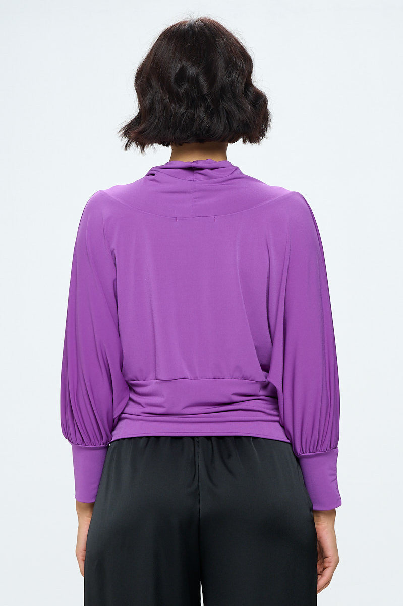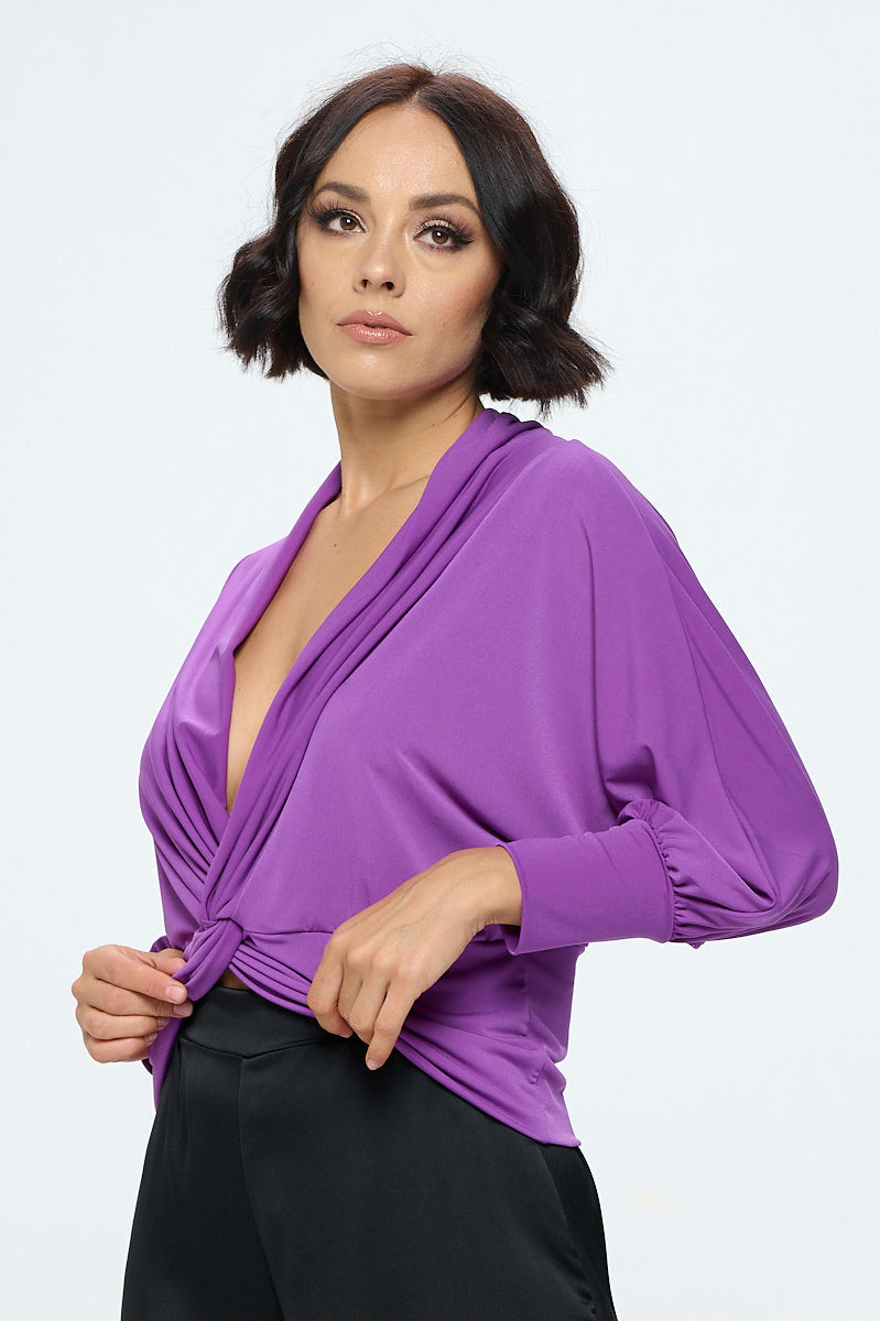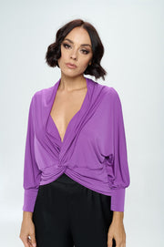 Made in USA Knit Fabric Deep Cowl Neck Top with Front Twist. Available in other Colors.