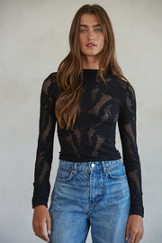 Knit Seamless Jacquard Mock Neck Long Sleeve Top Black