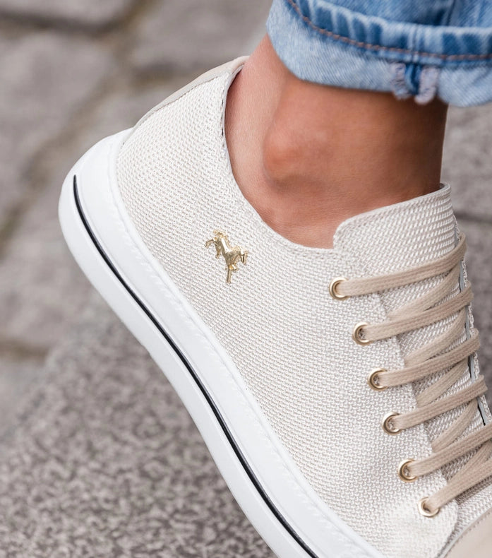 Elevate your style and comfort with our La Vie Sneaker. Made with real leather and canvas, and lined with luxurious leather, these sneakers offer both durability and a touch of sophistication. The 100% cotton cords and EVA sole provide a secure and comfortable fit, while the lightweight design and 1.5" high sole add a boost of energy to your every step. Trust Cavalinho to find your perfect fit.