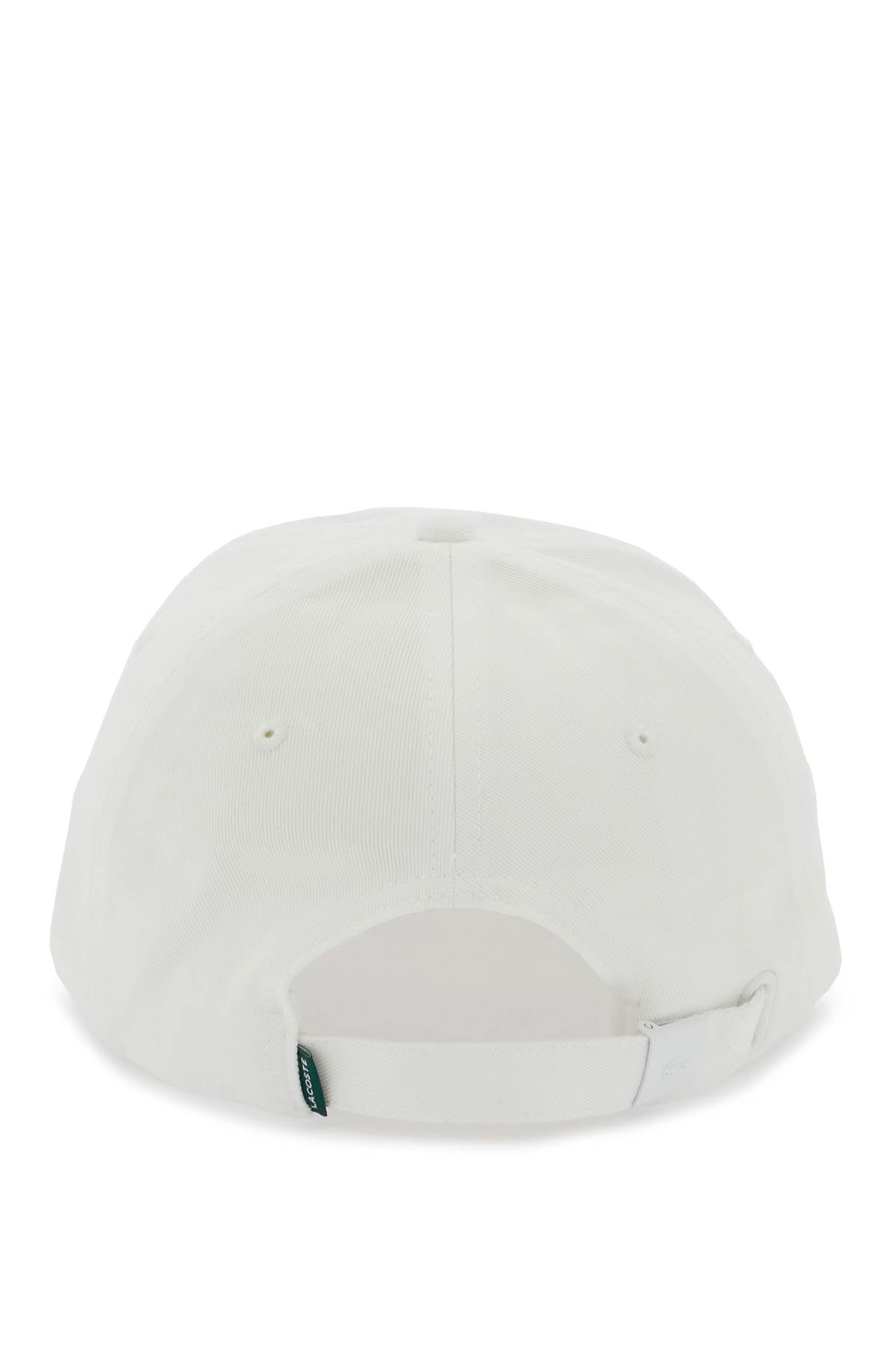 Organic cotton baseball cap by Lacoste with iconic crocodile applique on front. Embroidered ventilation eyelets, adjustable back strap and unlined interior. One size, genderless. Accessory Length = 63 cm,
