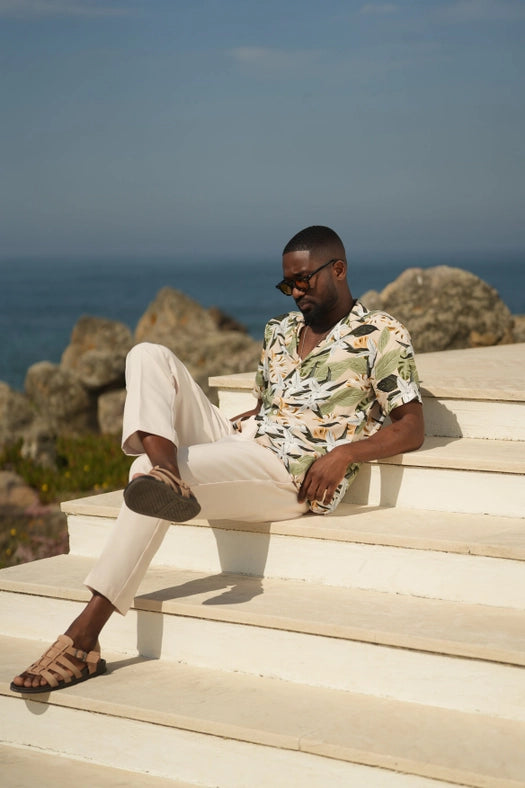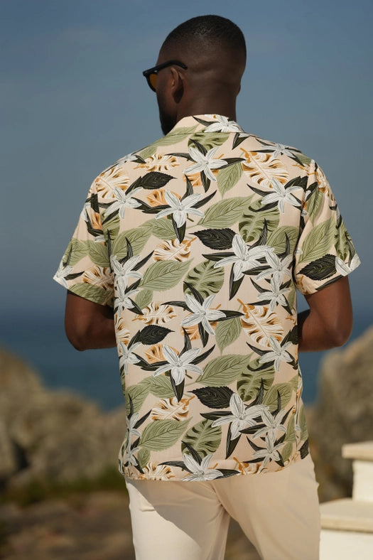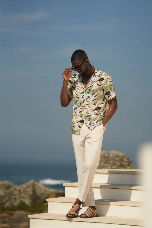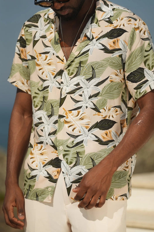 Experience the perfect combination of elegance and comfort with our Leaf Shirt. Crafted from 100% viscose, this shirt features a soft touch and classic style, with a regular fit, bowling collar, short sleeves, and front button closure. Elevate your wardrobe with this must-have piece.
