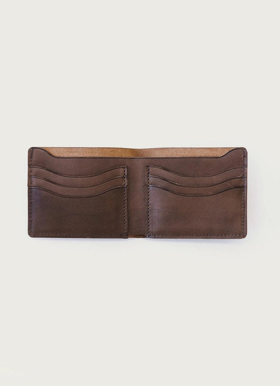 Expertly crafted from 100% full-grain leather with durable nylon thread, this bifold wallet is a timeless and reliable accessory for men. With a single cash pocket, four credit card holders, two internal pockets, and an ID slot with a window, it offers just enough capacity for all your essentials. Plus, it comes with a lifetime guarantee for repairs, making it a solid investment for years to come.