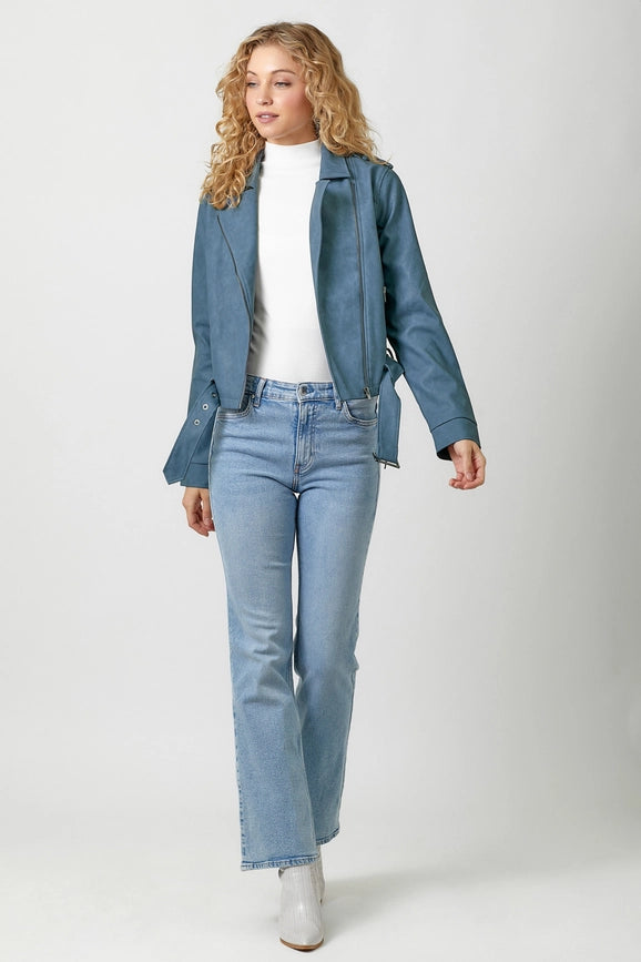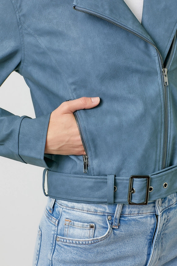 Leather Moto Jacket Blue