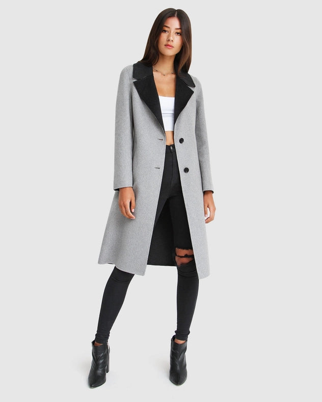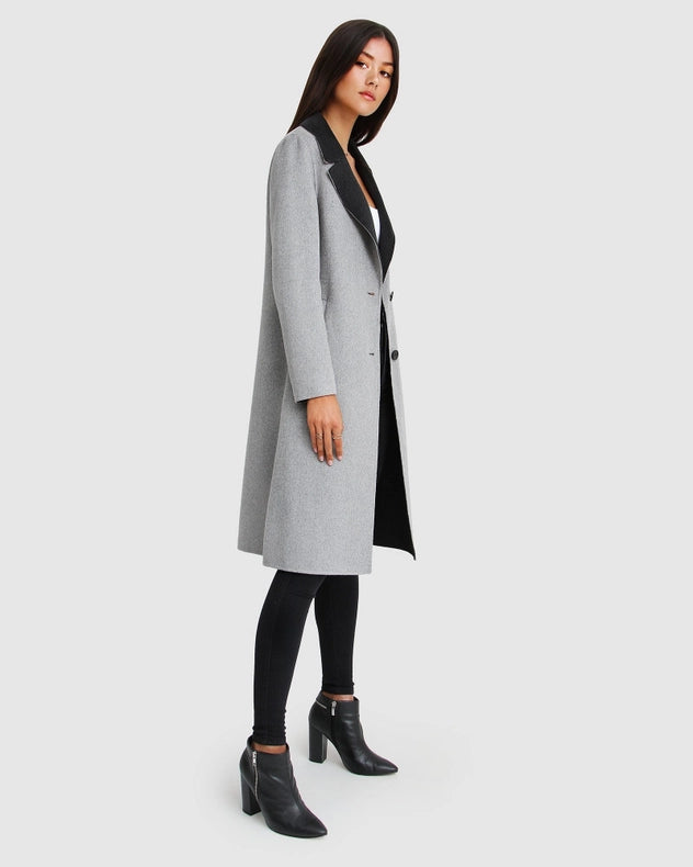 Expertly crafted with a timeless design, the Lexington Two-Tone Wool Blend Coat offers elegance and versatility. Featuring a double-faced design and contrasting collar, this coat is made with high quality materials that ensure lasting quality for seasons to come. Available in a regular fit and finished with welt pockets and a single-breasted button closure. Made with 60% wool and 40% polyester, this coat is comfortably warm and stylish. Length measures 102cm in a size small.
